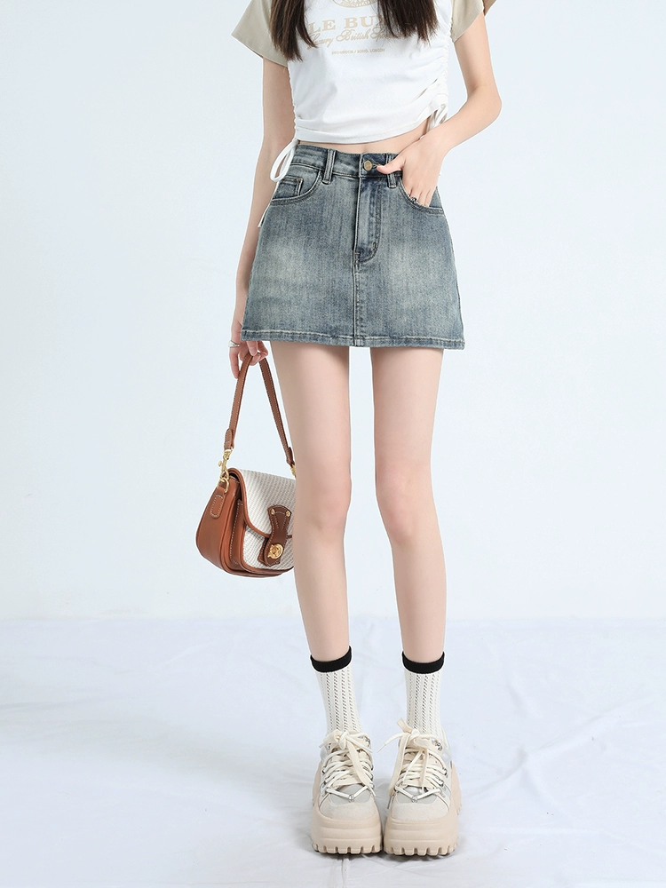 | nameOriginal | White denim short skirt for women 2024 spring and summer new slimming hip skirt design A-line skirt for small people |