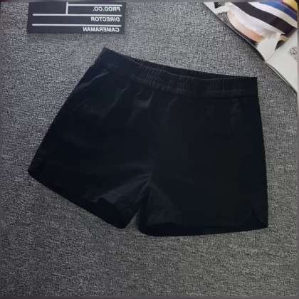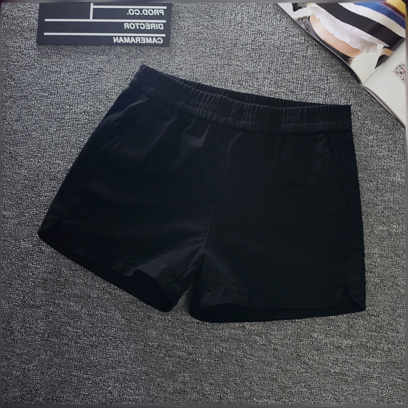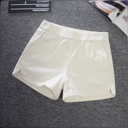 White denim shorts for women high waist 2024 summer new style elastic waist side slit A-line loose wide leg pants hot pants trendy