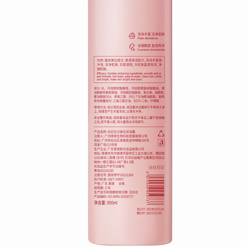 | nameOriginal | White diary whitening shower gel refreshing not greasy lasting fragrance deep cleansing moisturizing whitening shower gel for students |