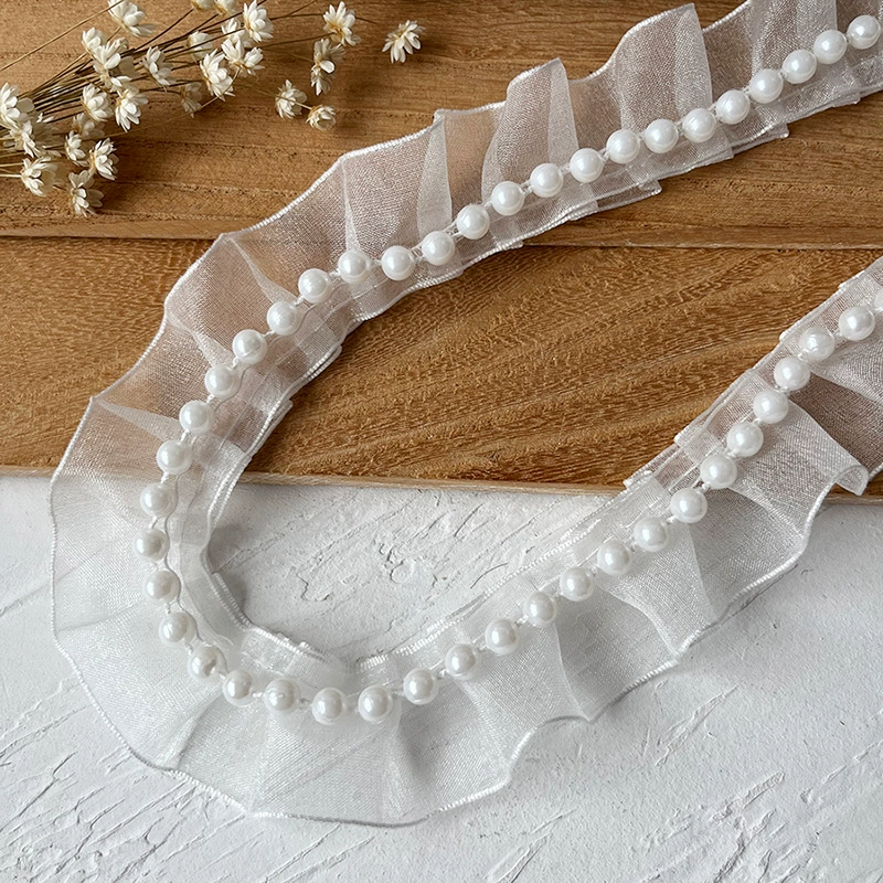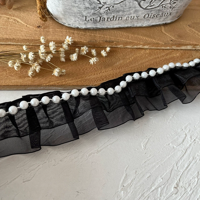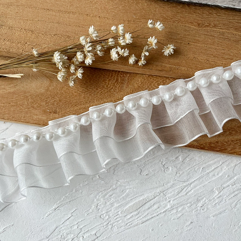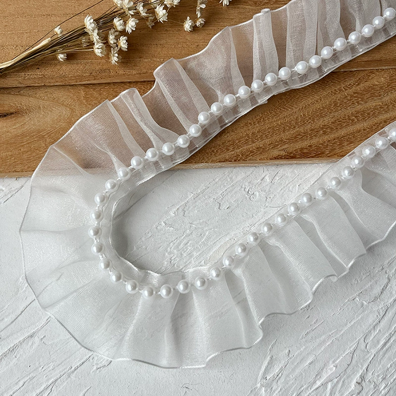 | nameOriginal | White double layer snow gauze with pleated beads lace trim clothing collar cuffs skirt doll lace accessories |