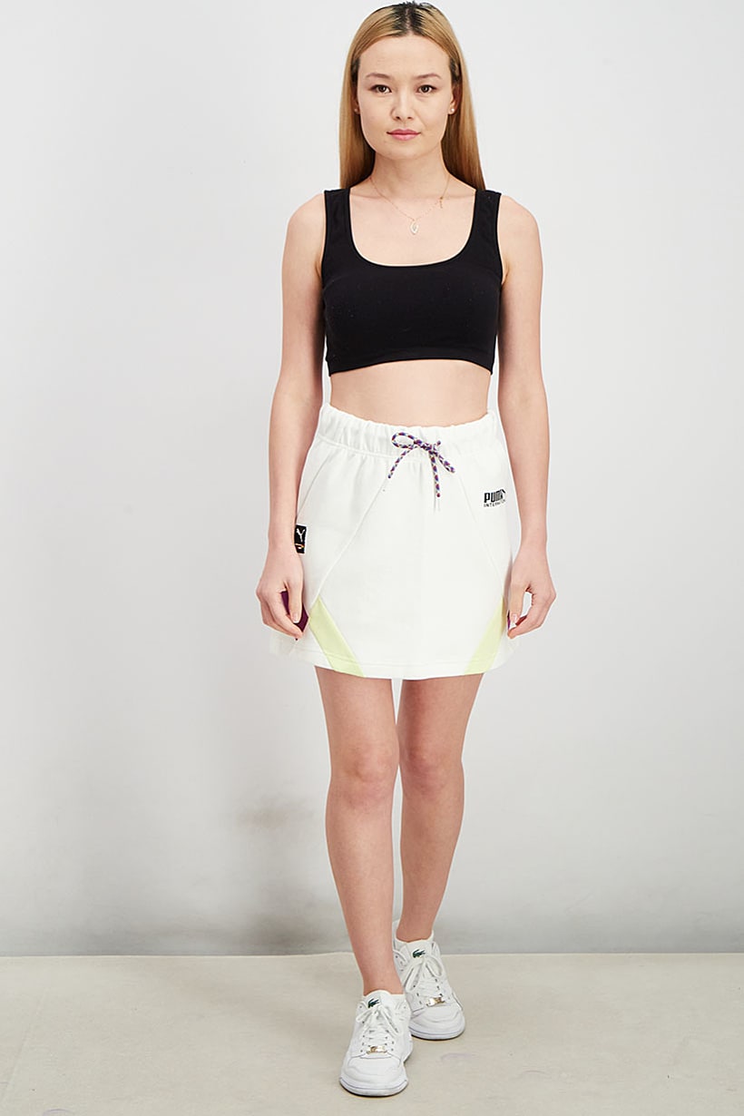 White Drawstring Mini Skirt with Brand Logo for Women’s Sports Fit.
