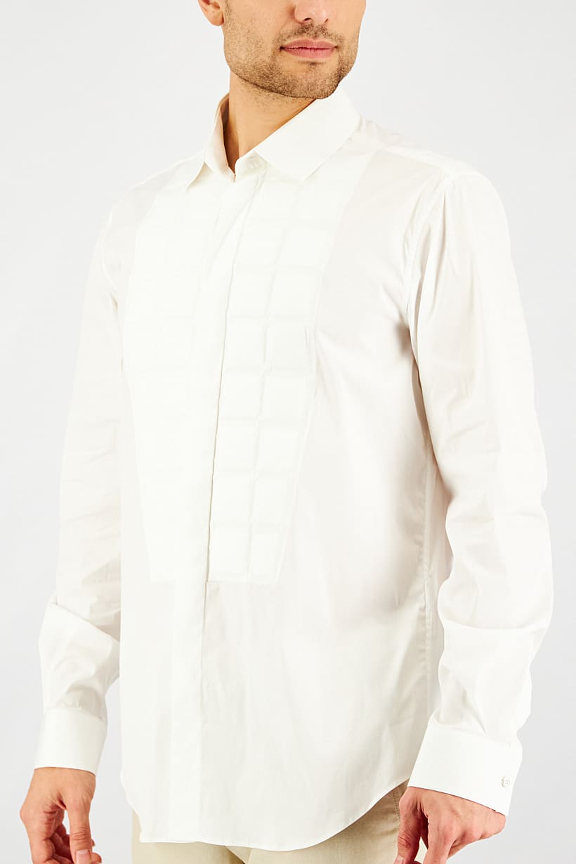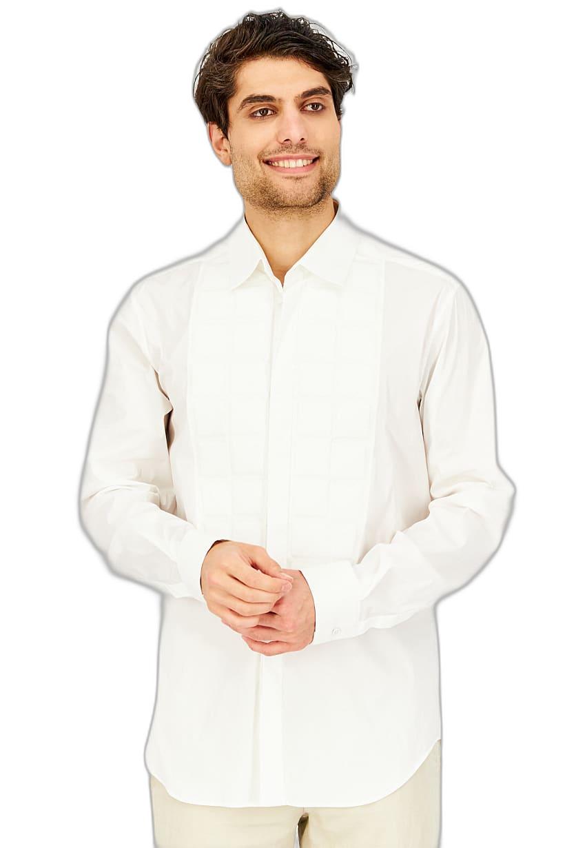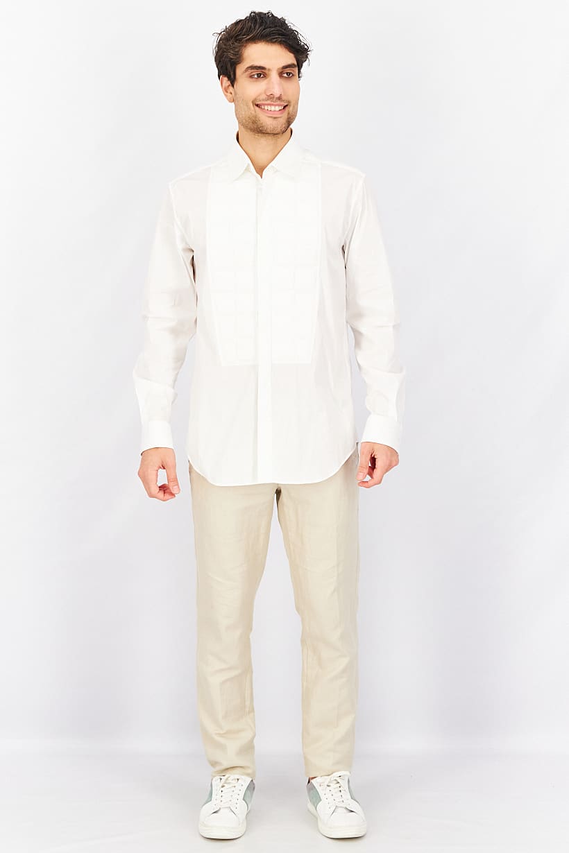 | nameOriginal | Men Regular Fit Spread Collar Long Sleeve Appliqued Dress Shirt, White |