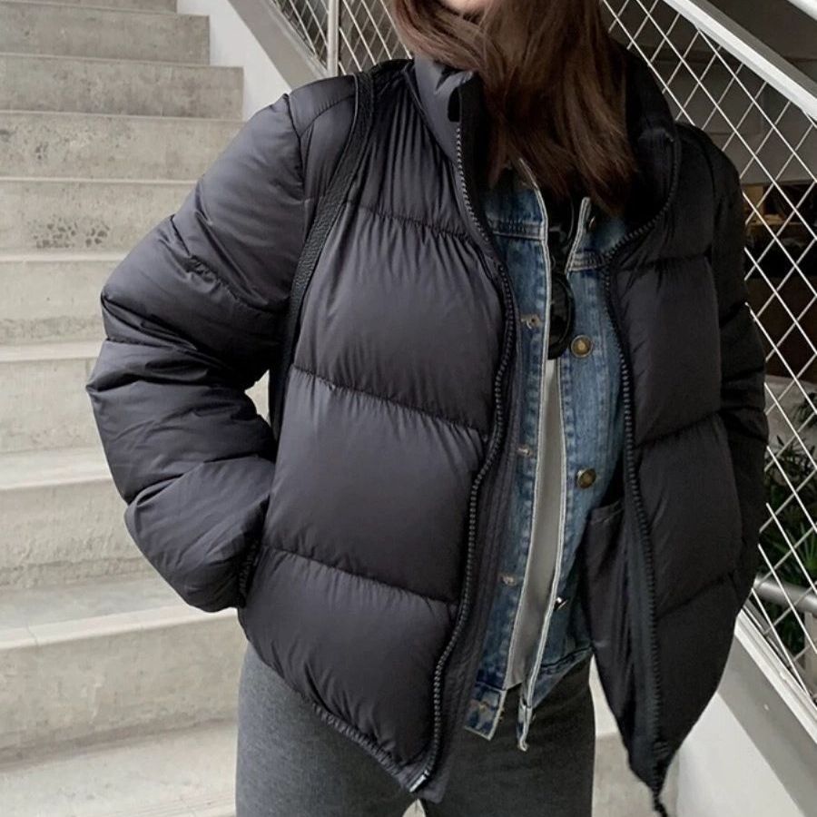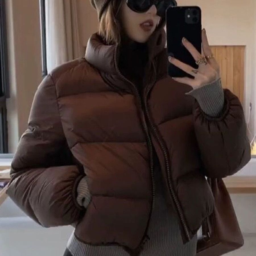| nameOriginal | White Duck down anti-season kendou down jacket women's short European style brown loose stand collar thick high waist bread coat fashion |