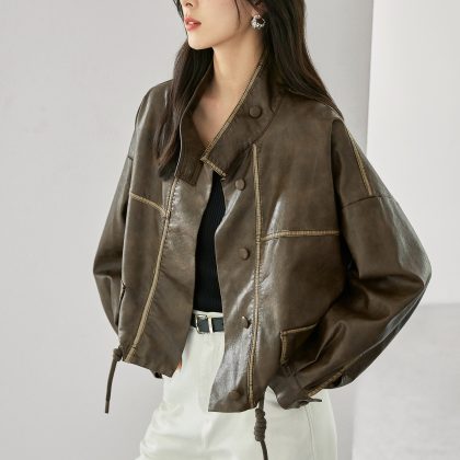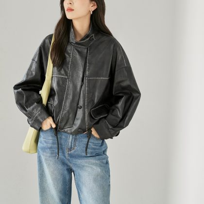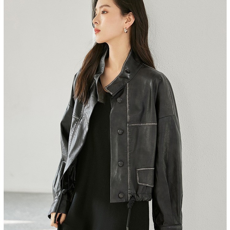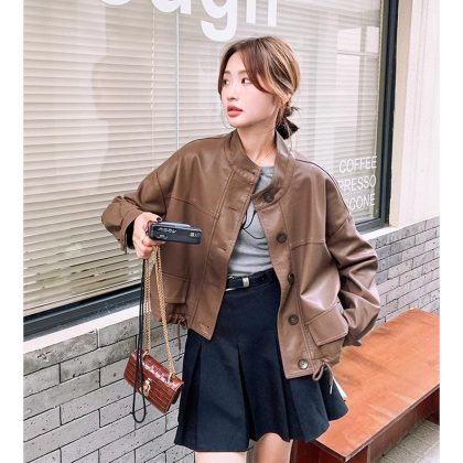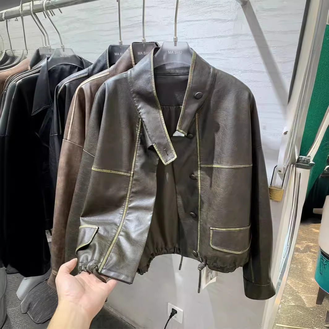 | nameOriginal | White Elegant Collar Short Coat Coat Women's 2024 Autumn New Drawstring High-grade Cord Leather Jacket |