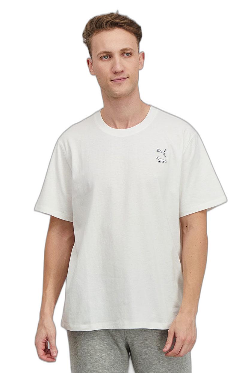 White Embroidered Sports Tee for Men with Short Sleeves.