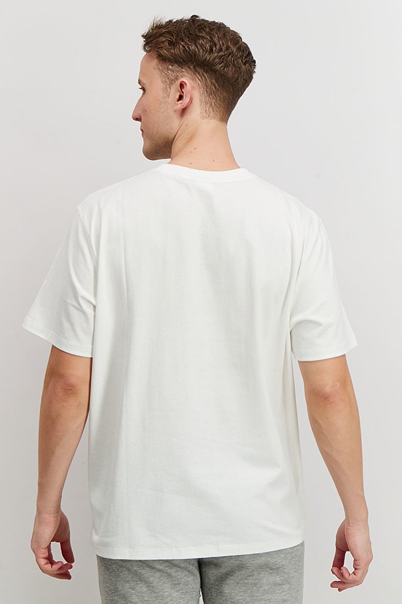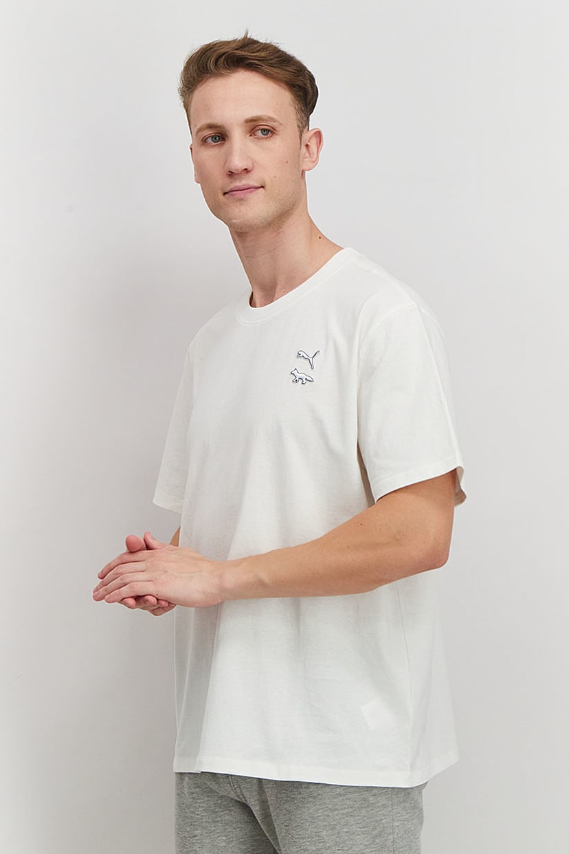 This product is easy to care for as it is machine washable. It has a sportswear fit and is available in US sizes. The fabric is made of 100% cotton and is light in thickness, making it suitable for outdoor sports. The t-shirt features an embroidered pattern and print, and comes in a white color family.