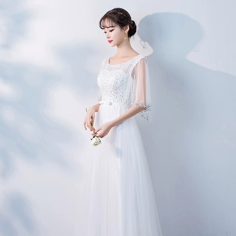 | nameOriginal | White evening dress elegant long 2024 new annual meeting student graduation performance dress fashion slimming women |