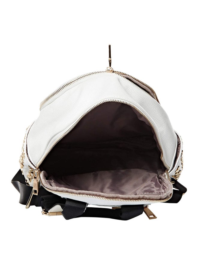 The sleek white color of this backpack is perfect for any season and can be easily paired with any outfit. The spacious interior of the backpack is perfect for carrying all your essentials, including your laptop, books, and other daily necessities. The adjustable straps ensure a comfortable fit, while the top handle allows for easy carrying.