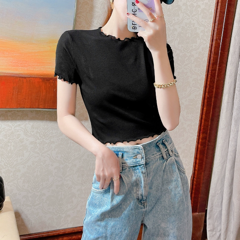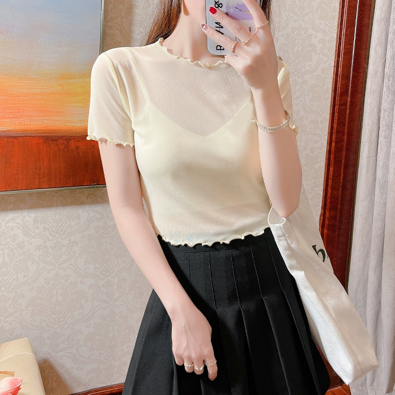 | nameOriginal | White female summer ear-cut chic ice silk slim short sleeves |