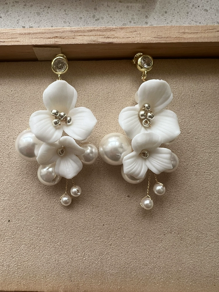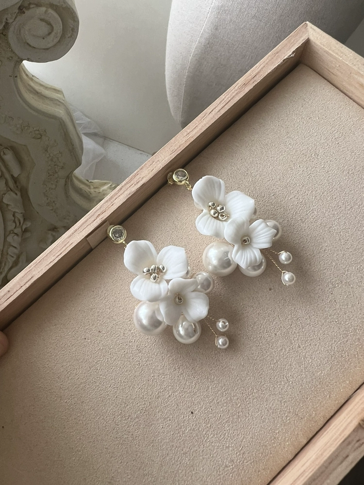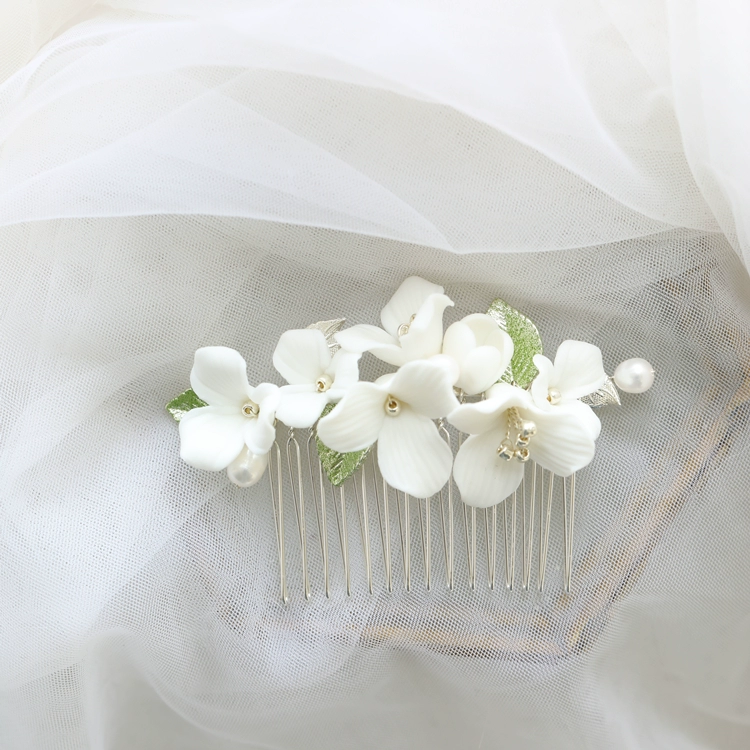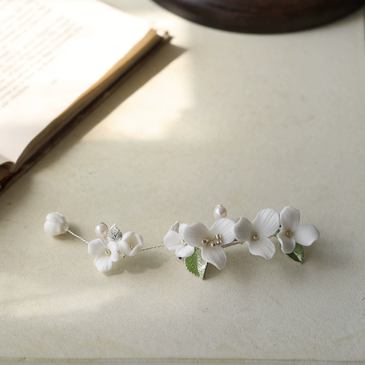| nameOriginal | White floral aesthetic bridal headdress photography hairpin |