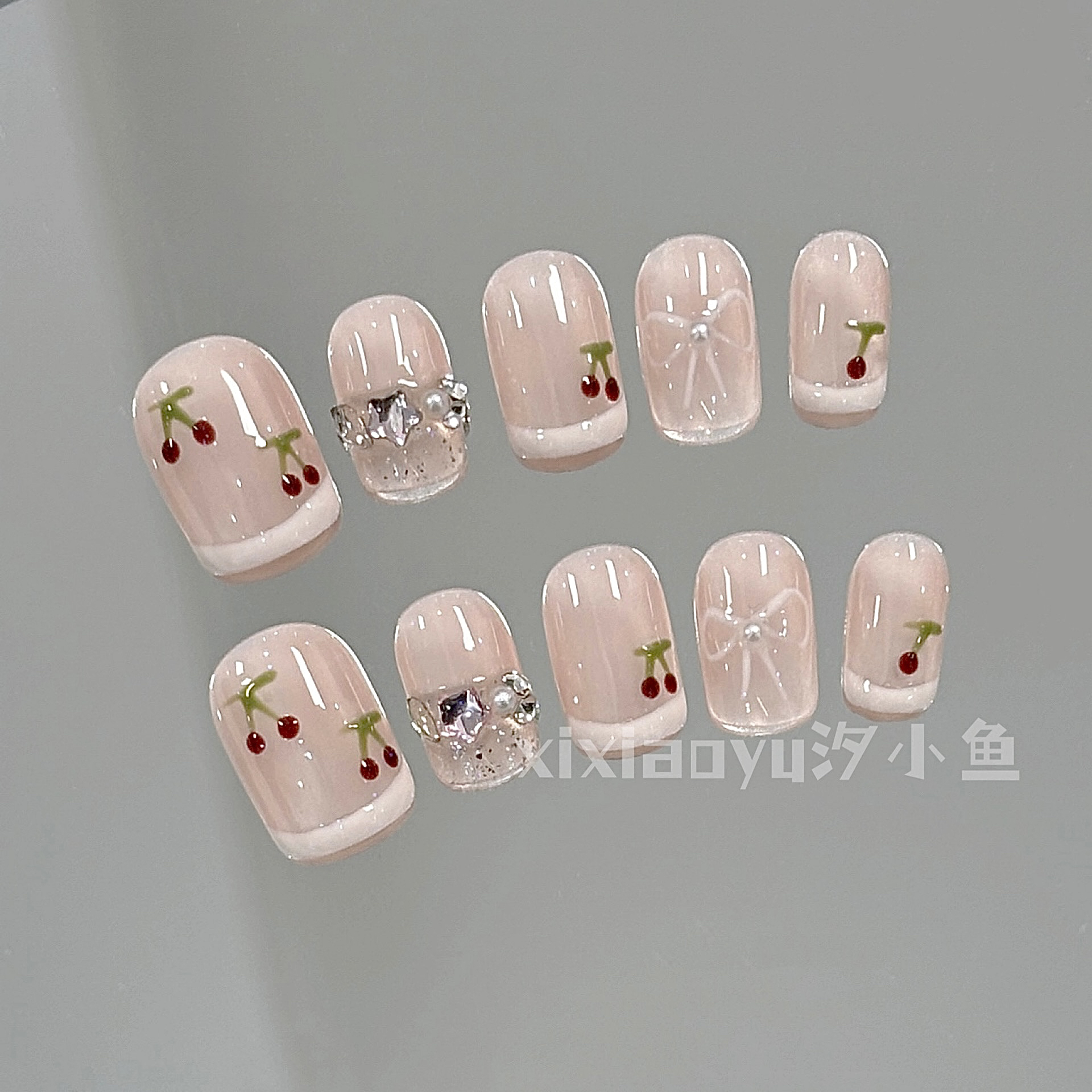 | nameOriginal | White French Bow Cherry Hand Painted Nail |