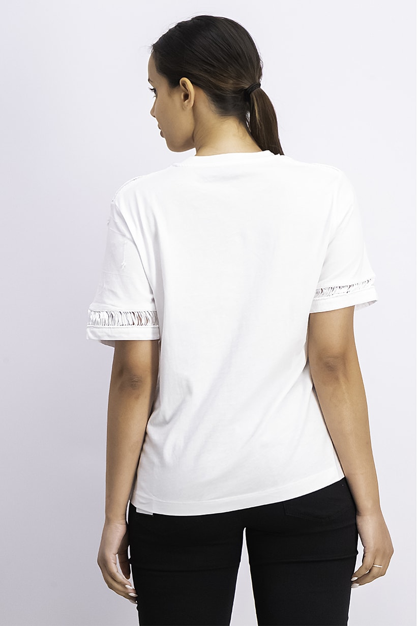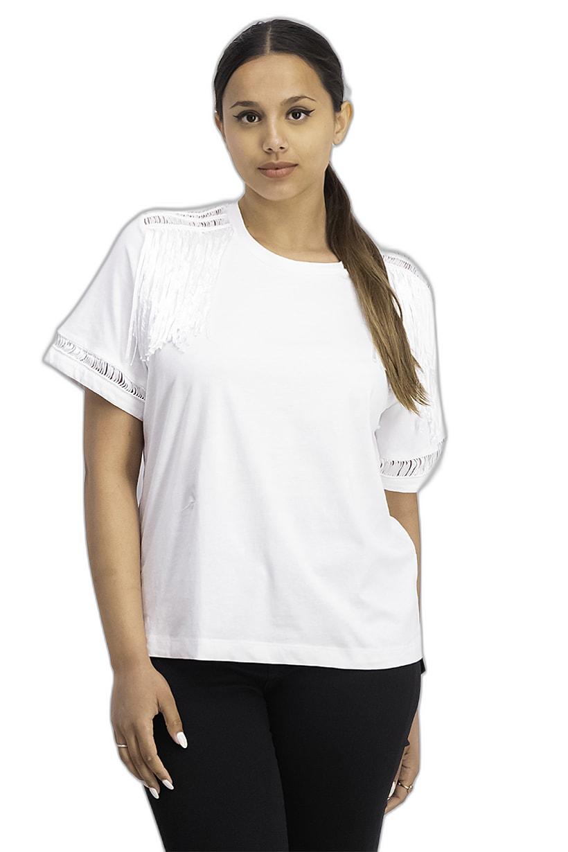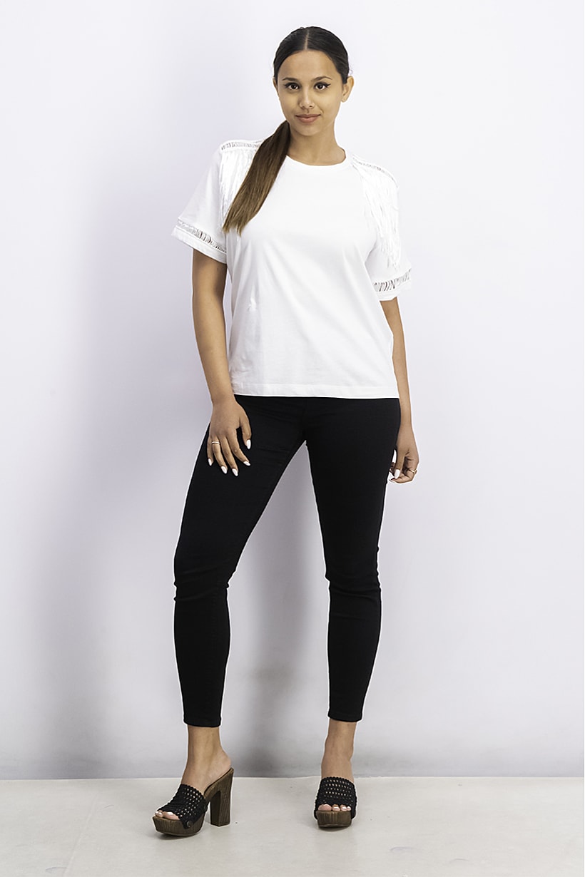 | nameOriginal | Women Crew Neck Short Sleeve Fringe Top, White |