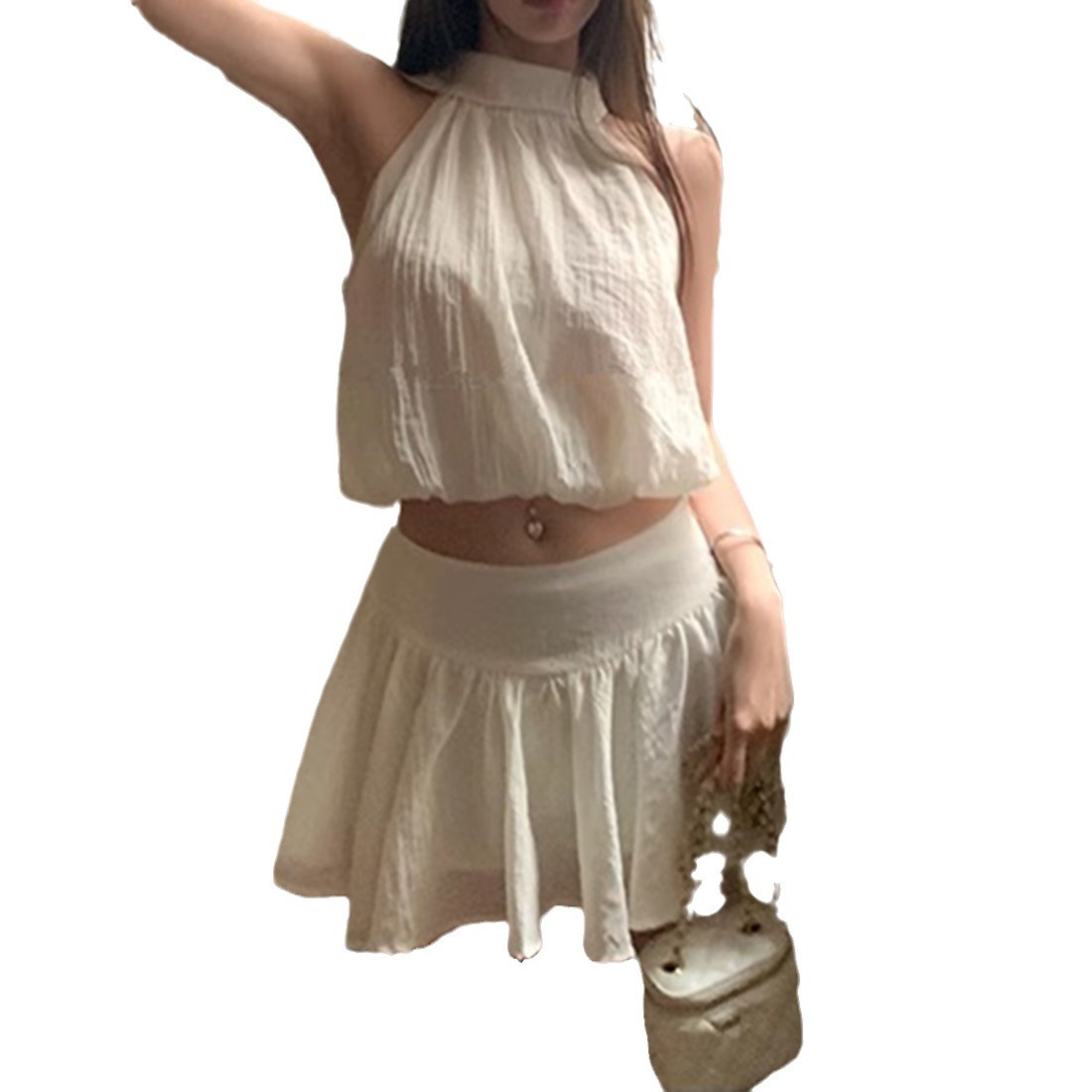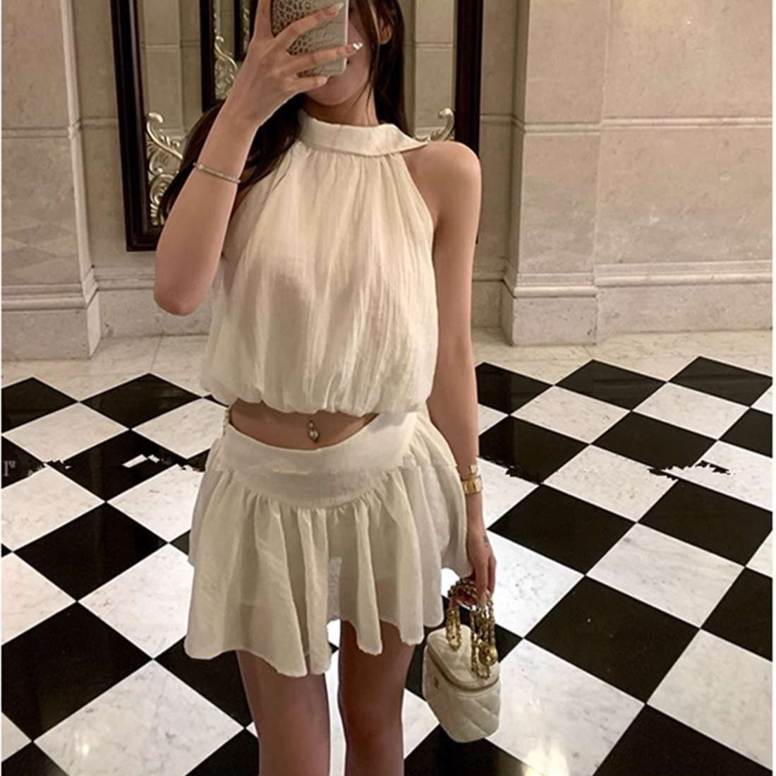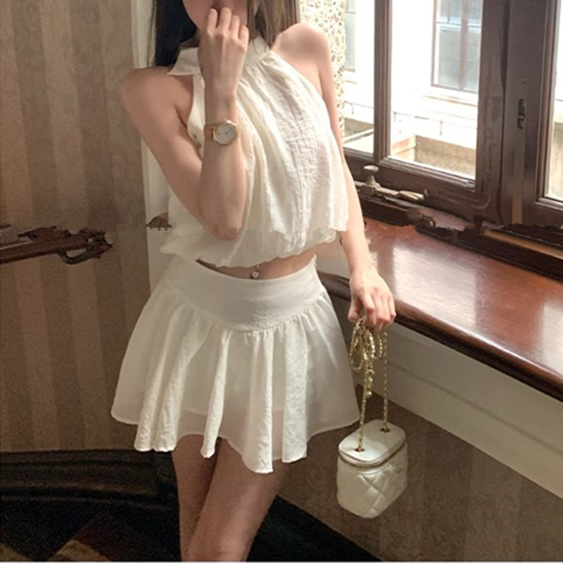 | nameOriginal | [White Gardenia's About] suit Women's 2024 Summer Dig Shoulder Neck Seersucker Vest Skirt Two-Piece Set |