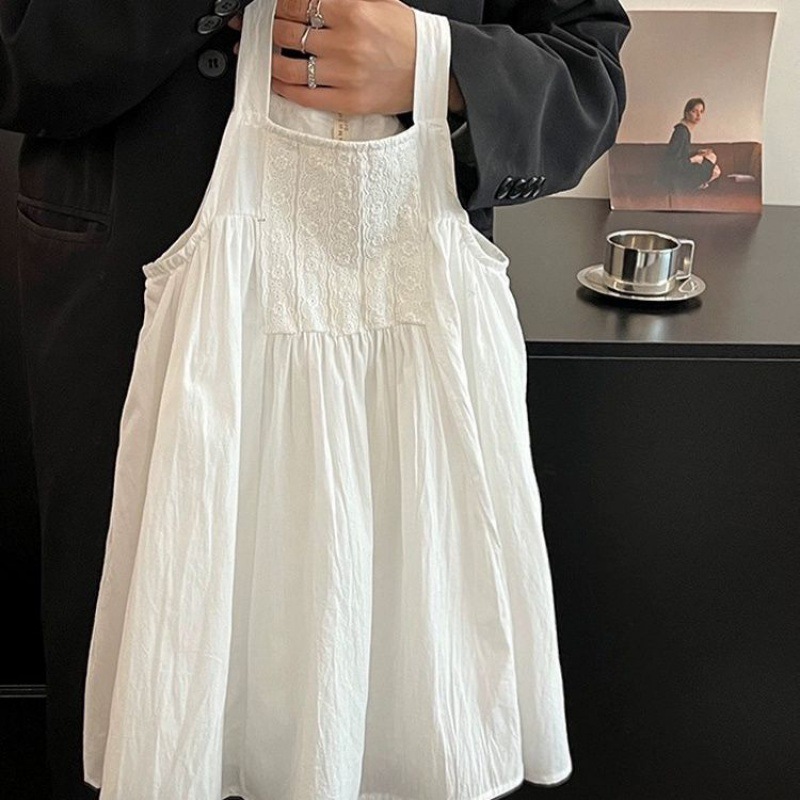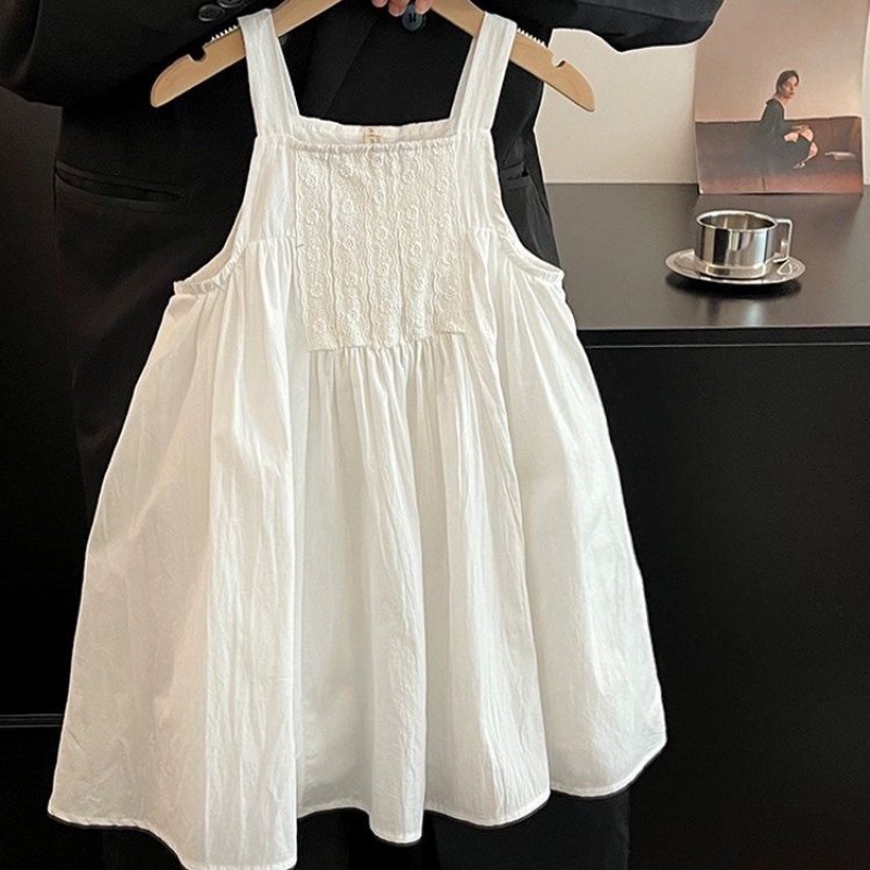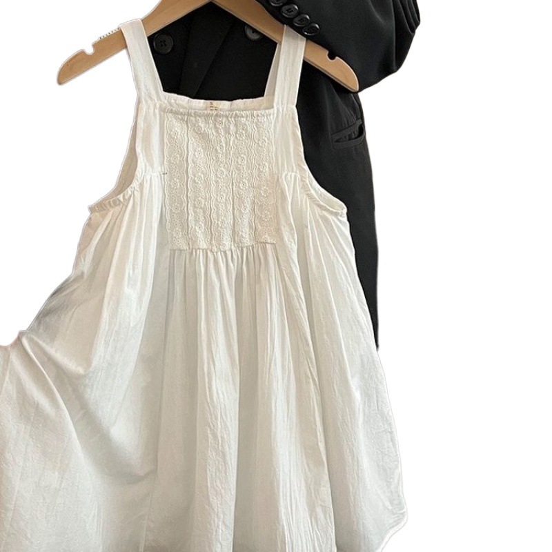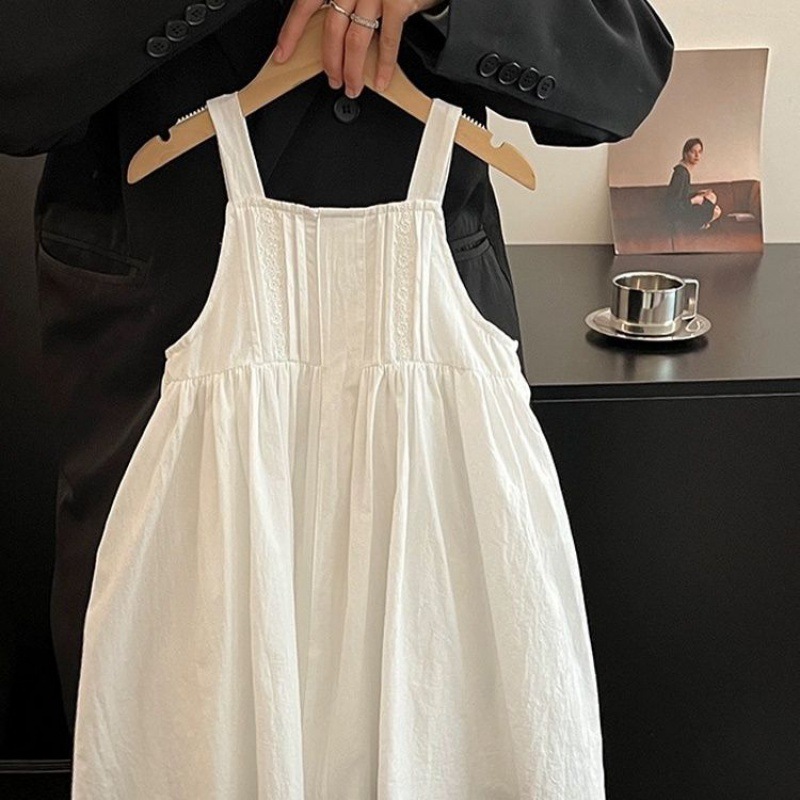 | nameOriginal | White Girls' dress 2024 Summer New Style Fashionable Solid Color Breathable Pure Cotton Sling Skirt |