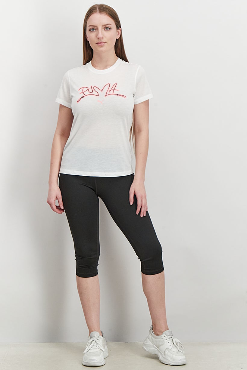 White Graphic Crew Neck Top for Women’s Sportswear.