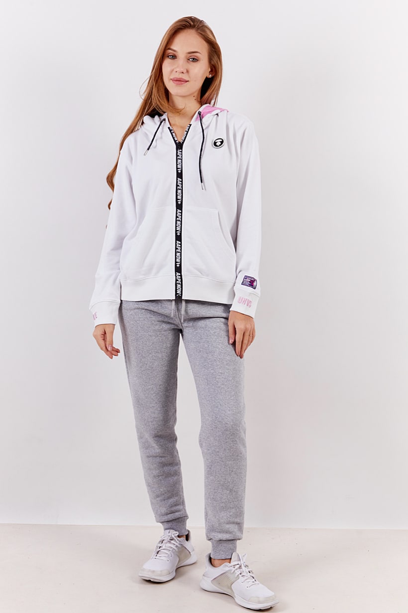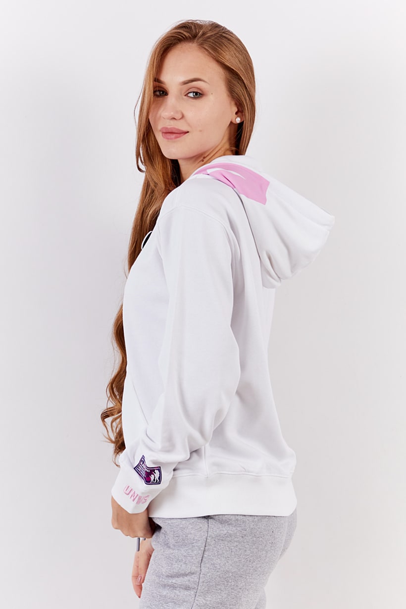 Care : Hand wash, Ideal For : Women, Size shown : International, Sleeve Length : Long Sleeve, Sweatshirt Style : Hoodie, Thickness : Medium, Types of Hem : Ribbed hem, Types of Neckline & Collar : Hood with drawstrings, Types of Sleeve : Longsleeve, Disclaimer : Product color may slightly vary due to photographic lighting sources or your monitor settings., Fabrics : 65% Cotton, 35% Polyester, Occasion : Casual, Pattern & Print : Graphic print, Types of Closures : Zipper closure, Color Family : White,