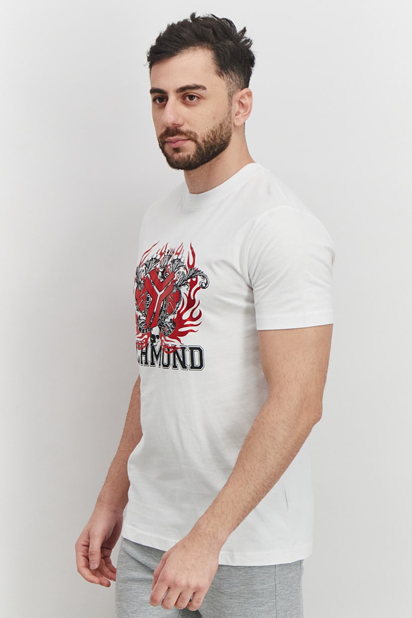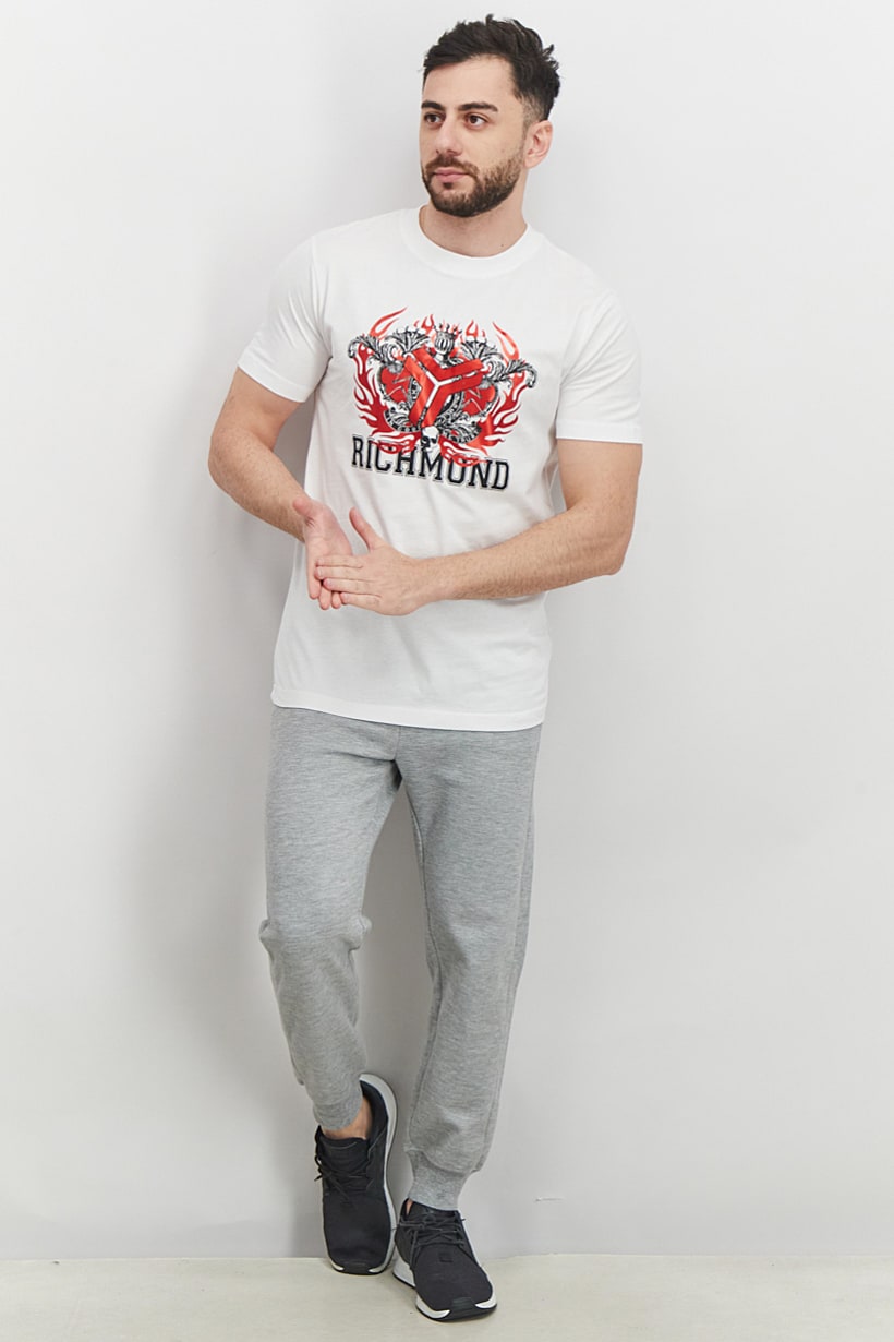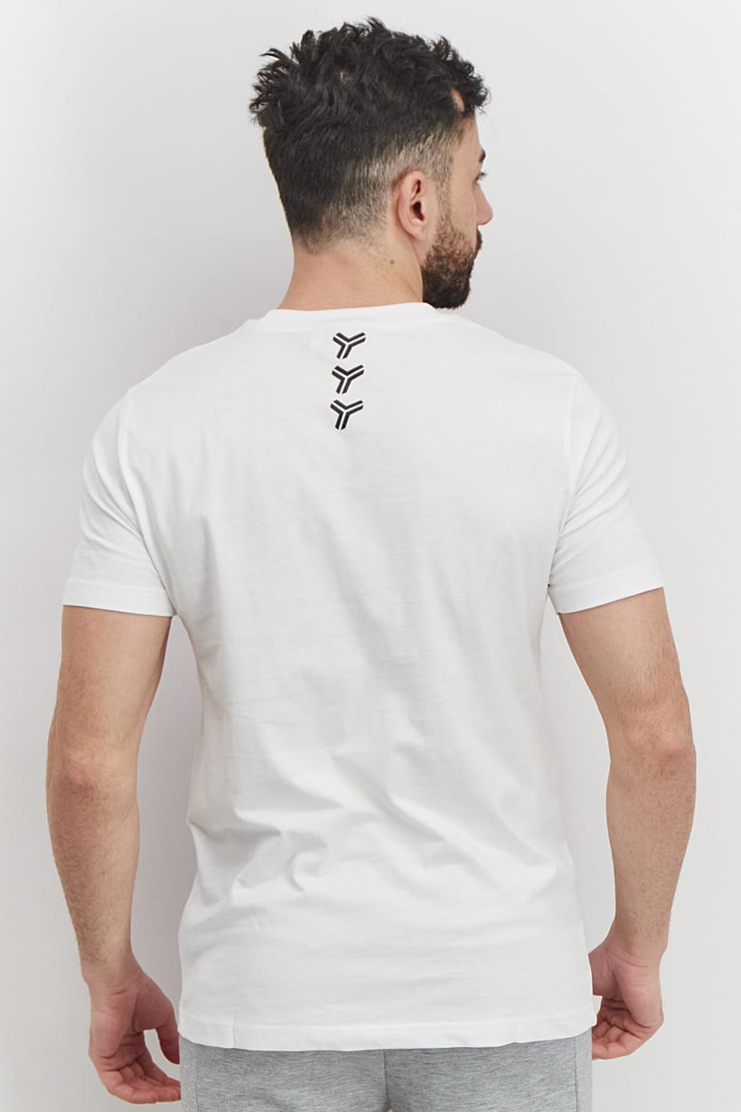 White Graphic T-shirt with Brand Logo for Men’s Sport Fit.