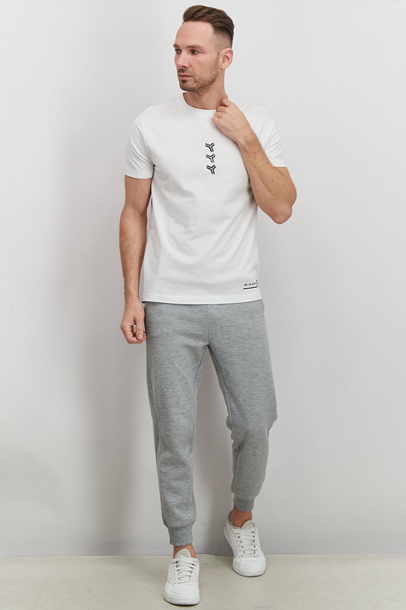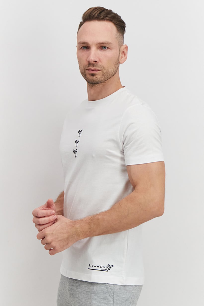 White Graphic T-shirt with Crew Neck and Short Sleeves for Men’s Sports Fit.