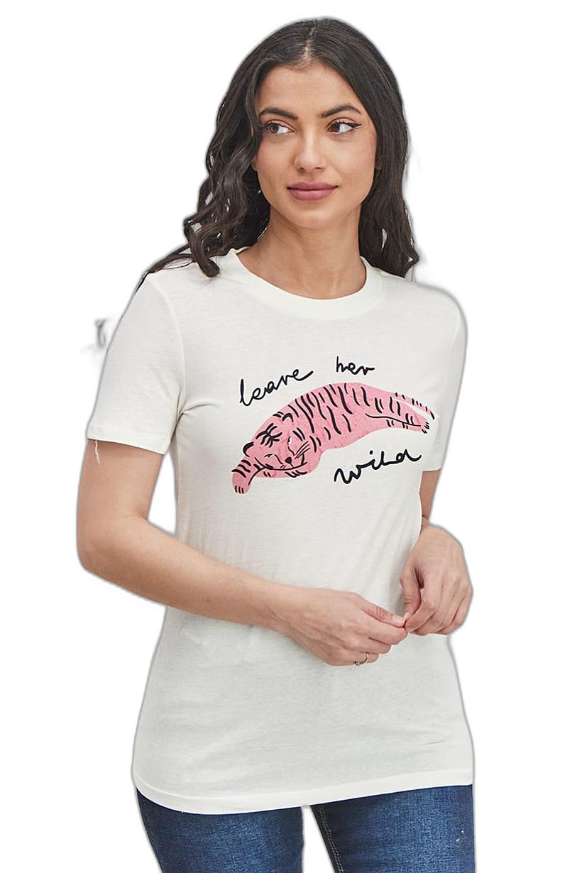 | descriptionOriginal | Care : Machine washable, Fit : Regular fit, Ideal For : Women, Size shown : International, Top Style : T-Shirt, Types of Hem : Step hem, Types of Neckline & Collar : Round neckline, Types of Sleeve : Short sleeve, Fabrics : 100% Cotton, Occasion : Casual, Pattern & Print : Graphic print, Types of Closures : Pullover, Color Family : White, |