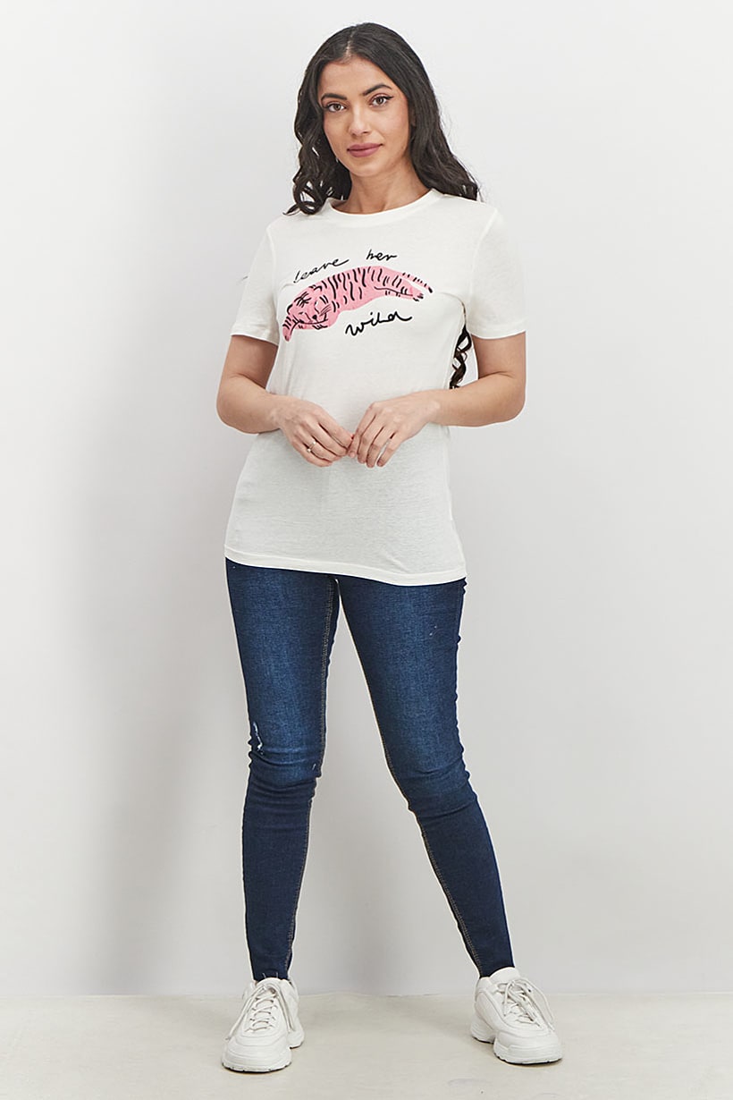 | nameOriginal | Women Round Neck Short Sleeve Graphic T-shirt, White |