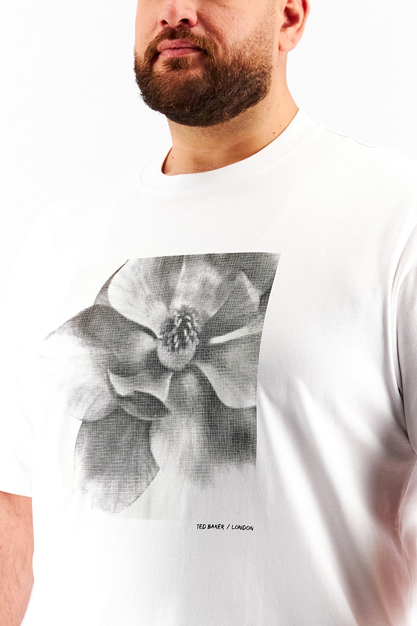 | descriptionOriginal | Care : Machine washable, Fit : Regular fit, Size shown : US, Sleeve Length : Short Sleeve, T-Shirt Style : Crew Neck, Type of Hem : Straight hem , Type of Neckline & Collar : Crew neckline , Fabrics : 100% Cotton, Occasion : Casual, Pattern & Print : Graphic print, Types of Closures : Pullover, Color Family : White, |