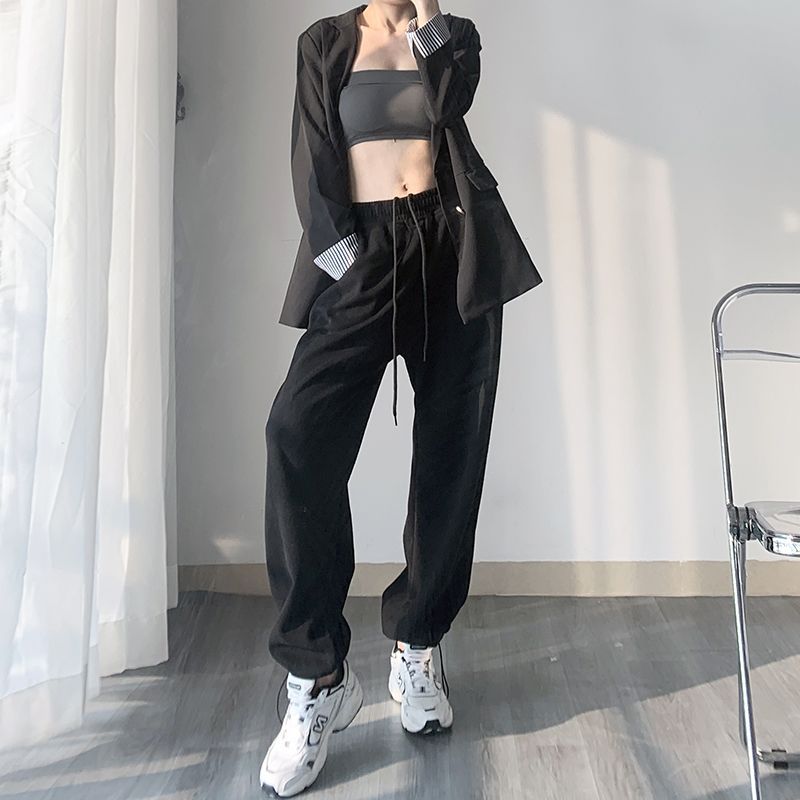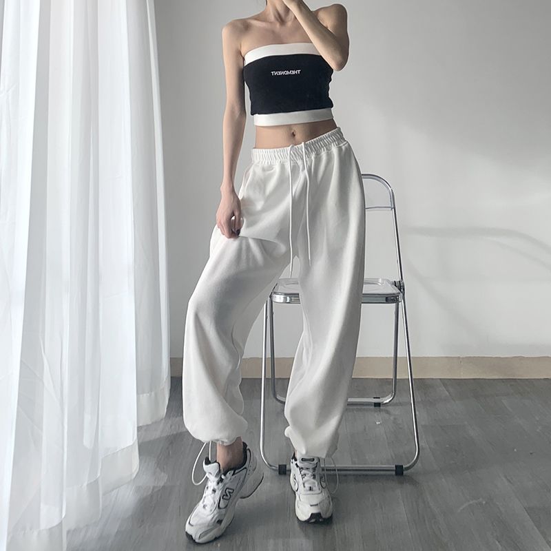 White Gray Sports Pants Women's Spring and Autumn Summer 2024 New Loose Foot-toe Sweatpants Slimming Casual Drawstring Wide-leg Pants