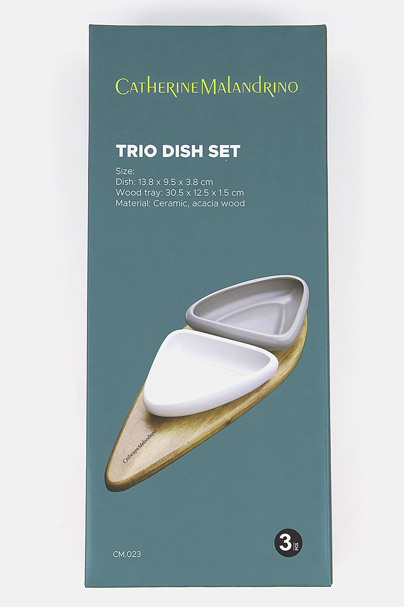 | sub_Categories | Kitchen & Dining, Tableware & Serveware, trio dish set white and grey and natural |