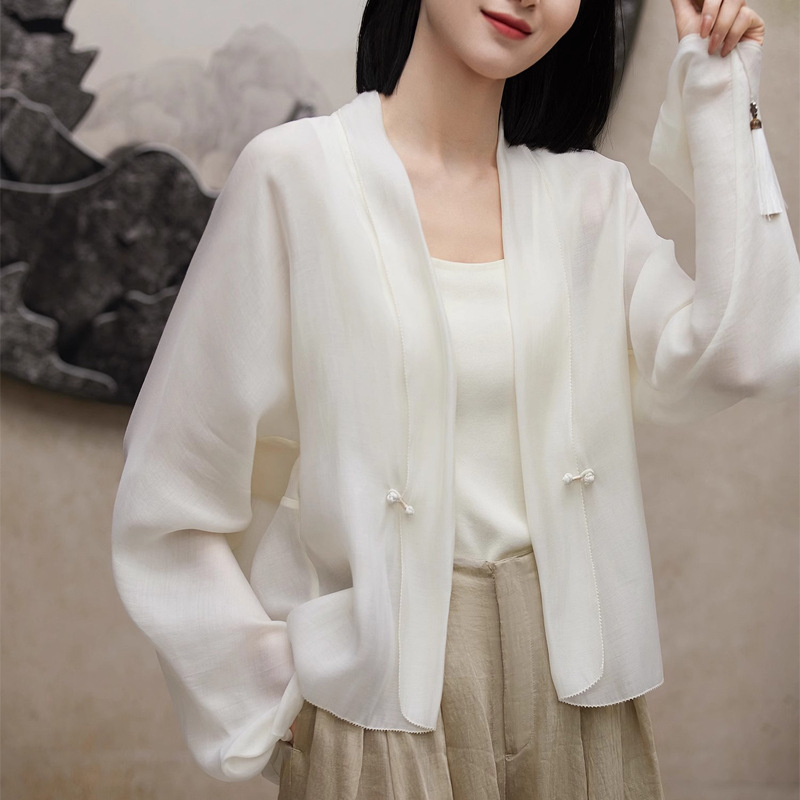 | nameOriginal | White Guofeng New Chinese Style Elegant Sunscreen Short Coat Women 2024 New UV-resistant Thin Cardigan |