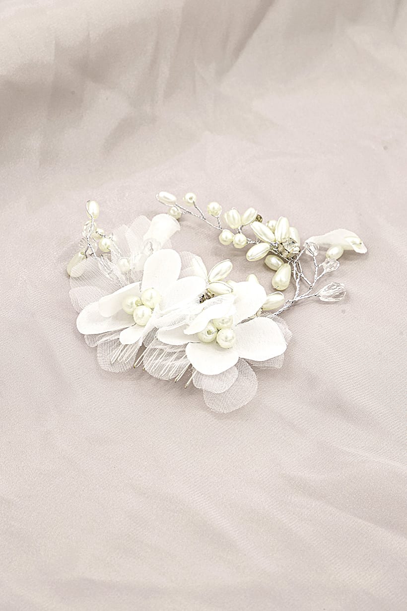 Personal Care, Hair Care, hair comb with tulle and pearl floral clip white