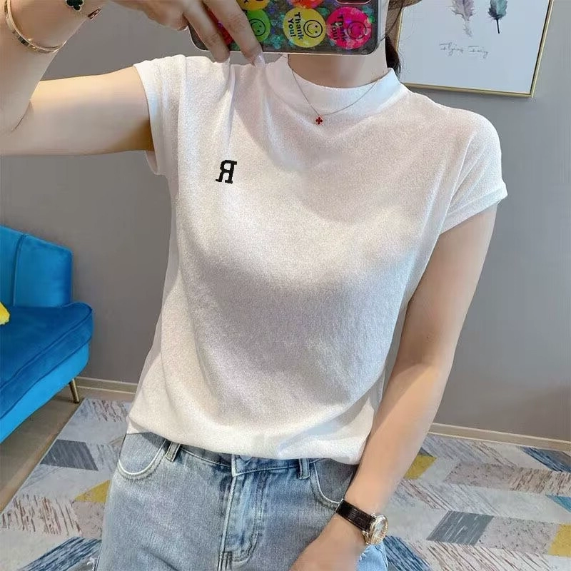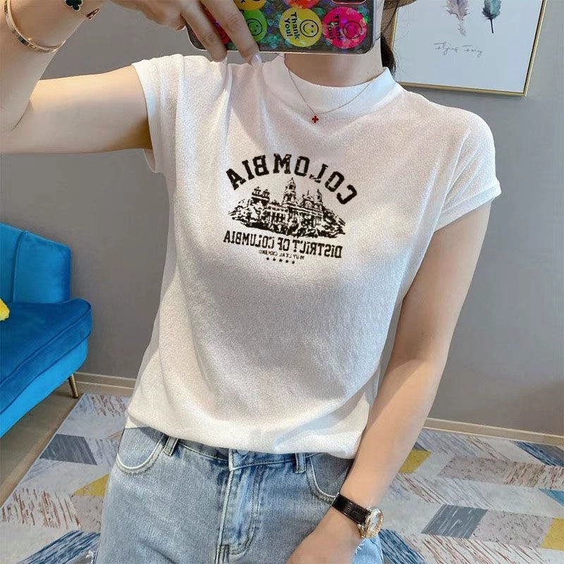 | nameOriginal | White half turtleneck summer loose short-sleeved T-shirt |