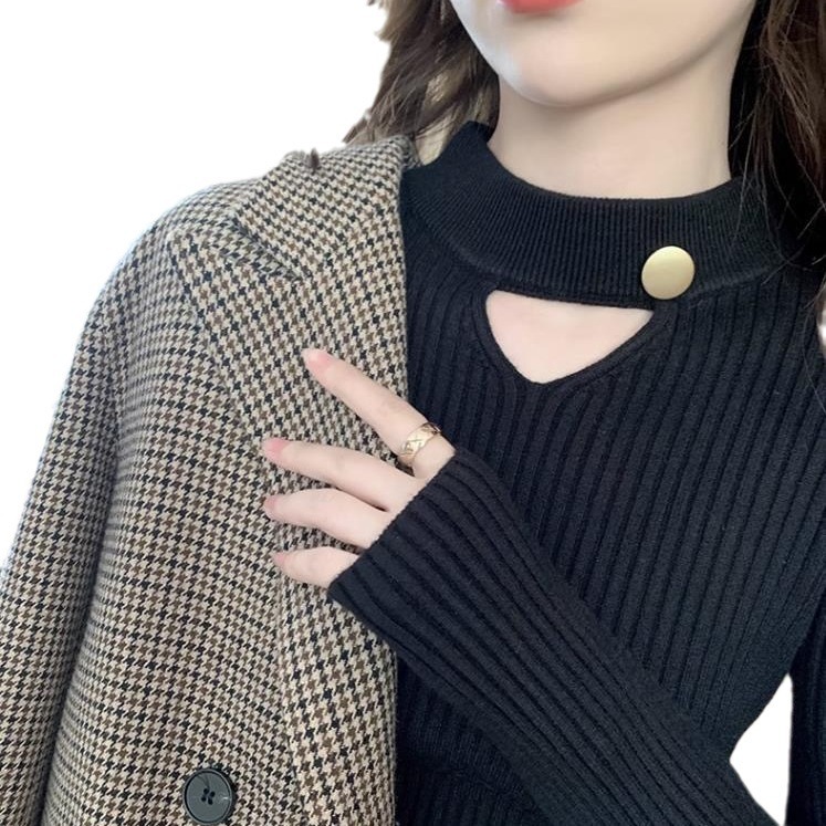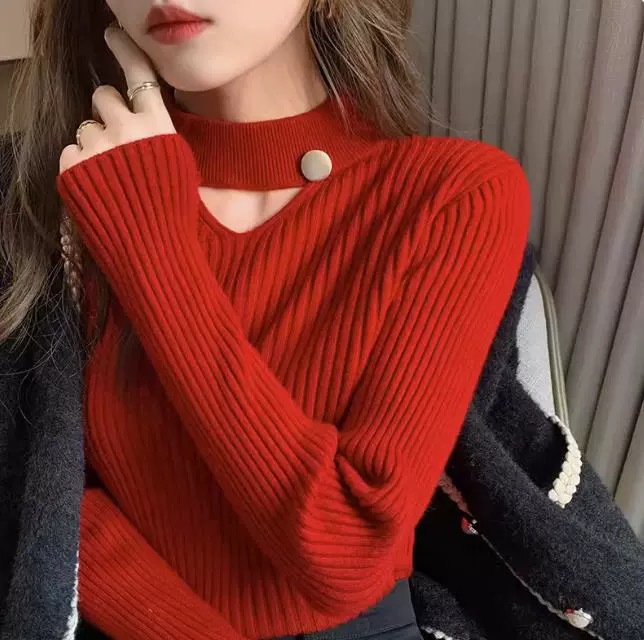 | nameOriginal | White Hanging Neck Base Shirt Women's 2023 Autumn and Winter Half-turtleneck Knitted Top with Hollow-out Lantern Sleeve Thick Sweater |