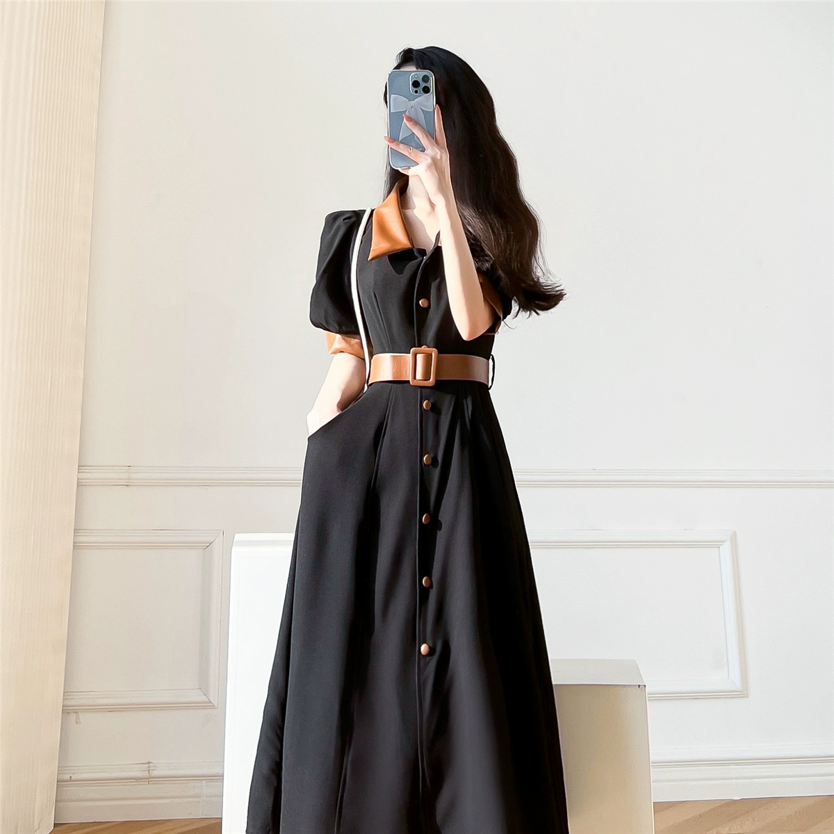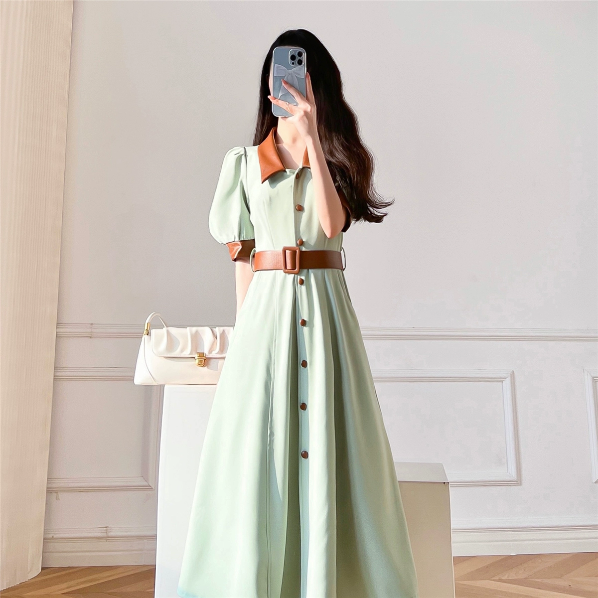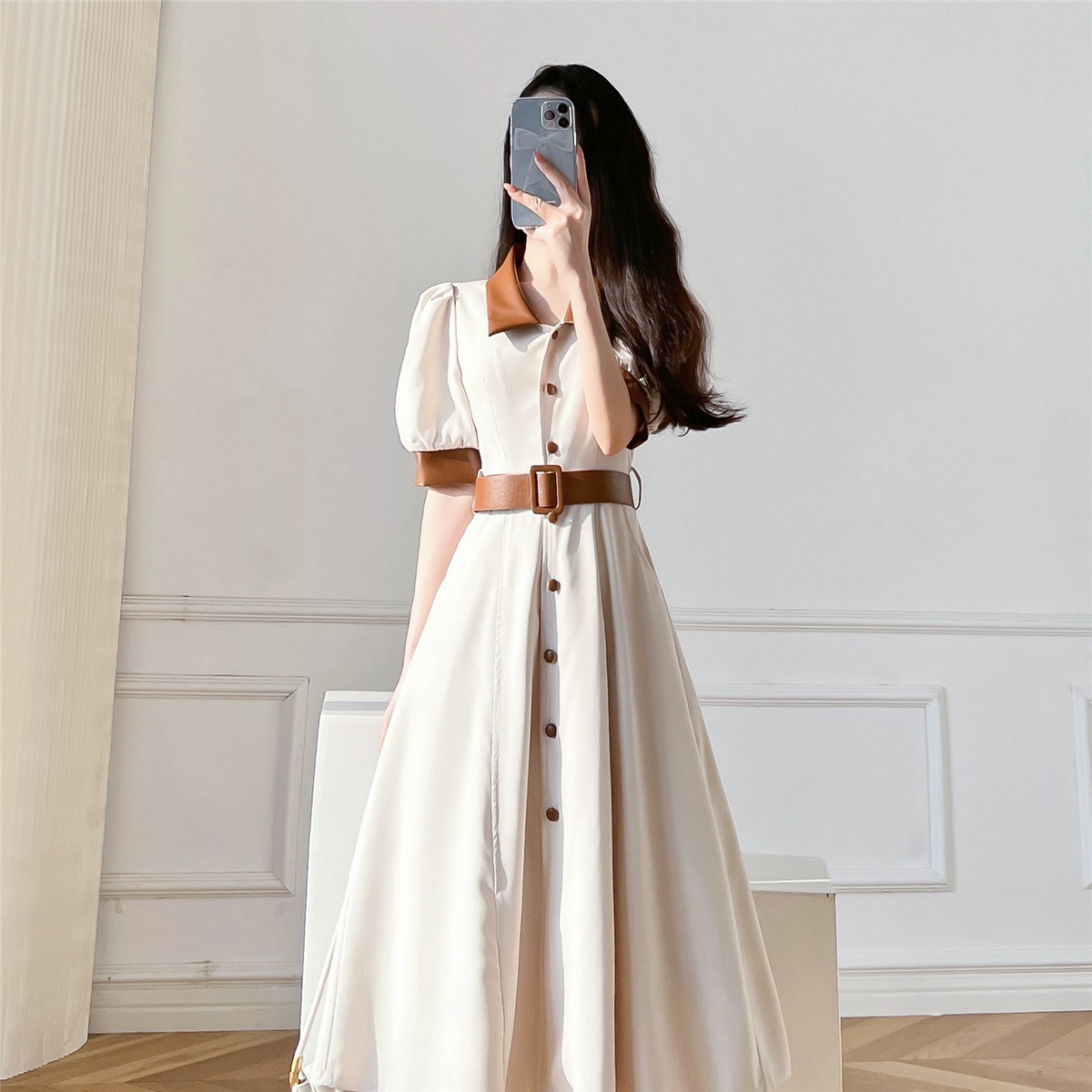 | nameOriginal | White high-end dress for women, summer retro fake two-piece dress |