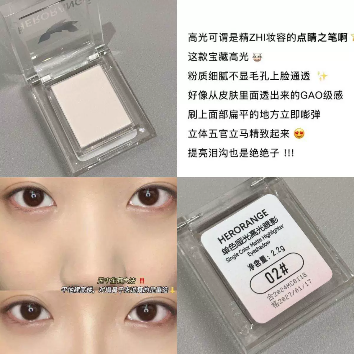 | nameOriginal | White high-gloss powder matte face face brightening expansion color tear trough concealer blush trimming three-in-one plate genuine |