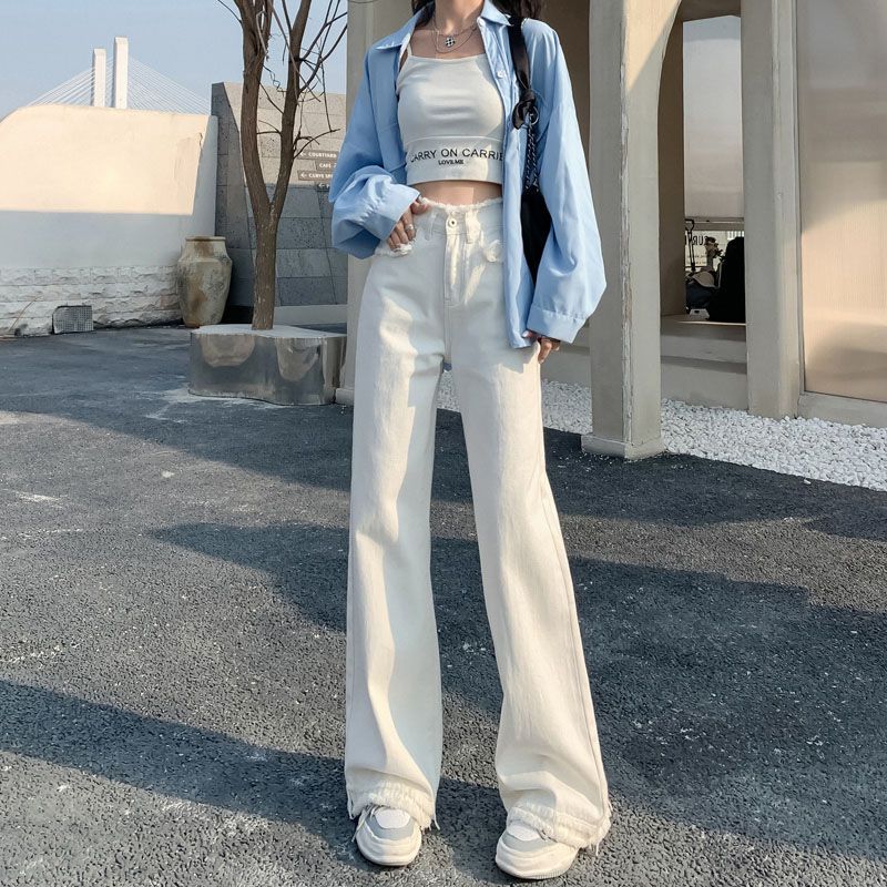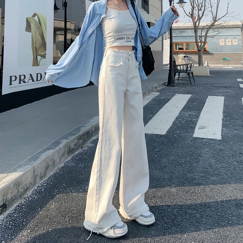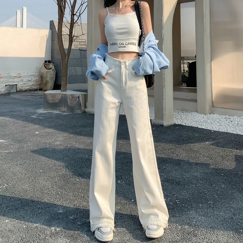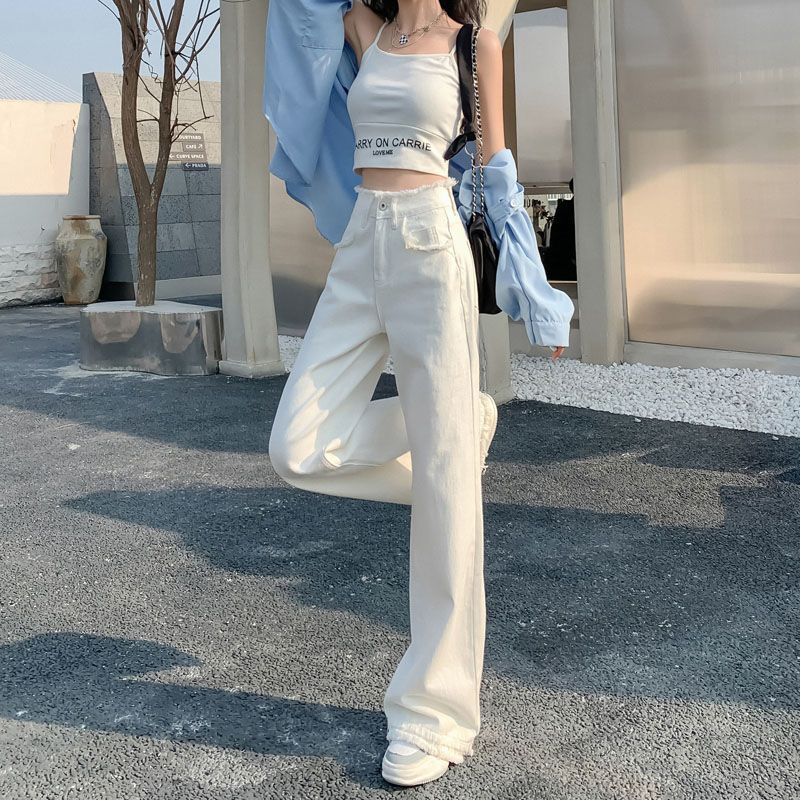 | nameOriginal | White High Waist Straight Jeans Women's 2024 Spring and Autumn New Design Niche Wide Leg Pants |