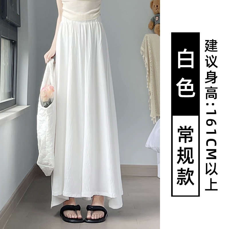 White high -waist skirt cotton and linen casual wide -leg pants