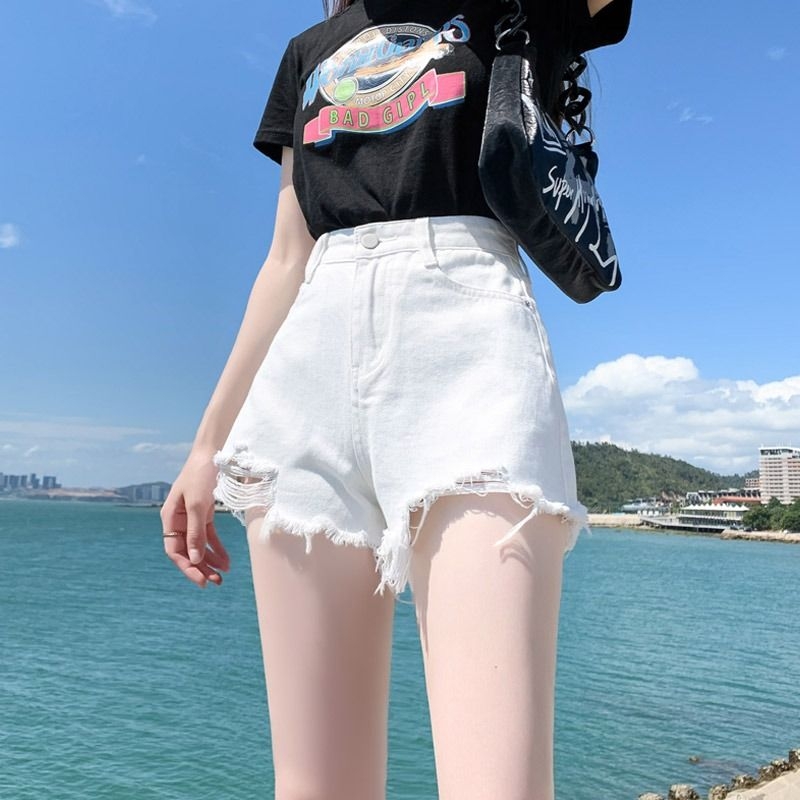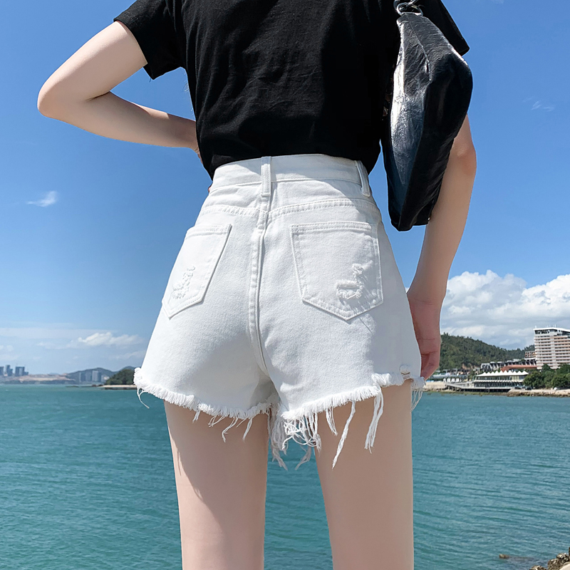 | nameOriginal | White Hole Denim Shorts Women's Summer 2024 New High Waist Loose Slimming Small A- shaped Hot Pants Thin |