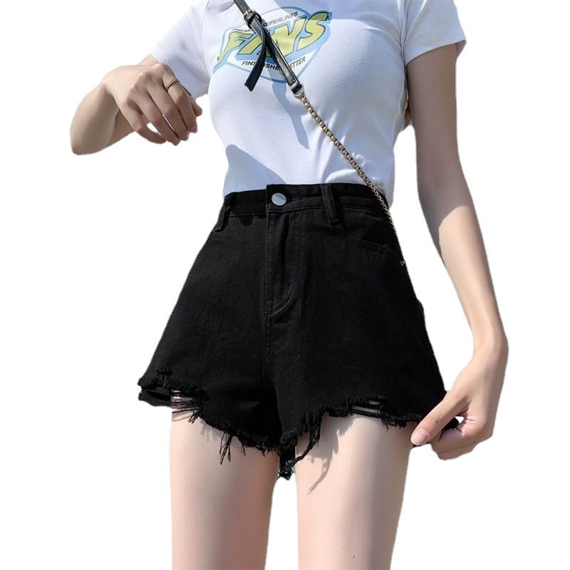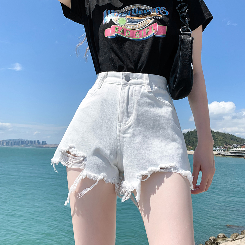 | nameOriginal | White Hole Denim Shorts Women's Summer 2024 New High Waist Loose Slimming Small A- shaped Hot Pants Thin |