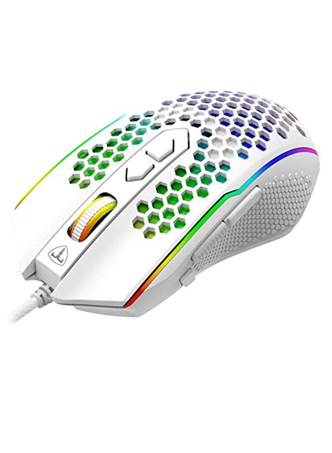 White Honeycomb Gaming Mouse with RGB Backlight, 8000 DPI, and High Precision Sensor for Windows PC & Laptop Gamers.
