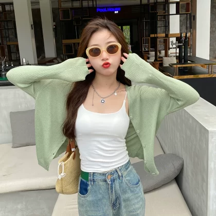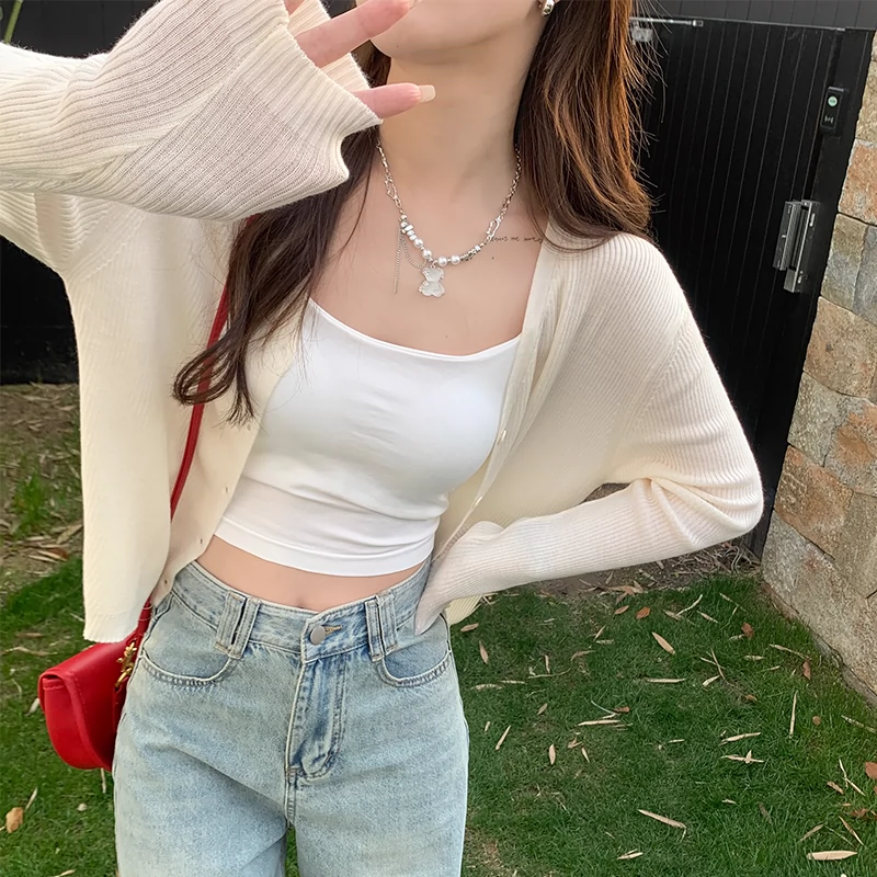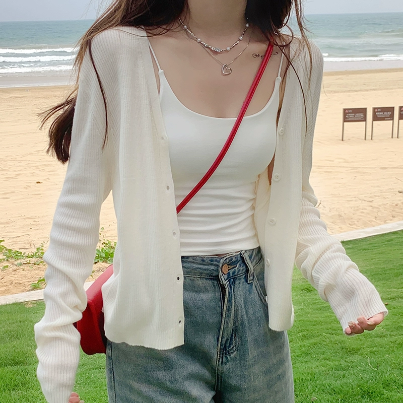 | nameOriginal | White ice silk sunscreen suspender skirt paired with an air-conditioned cardigan |