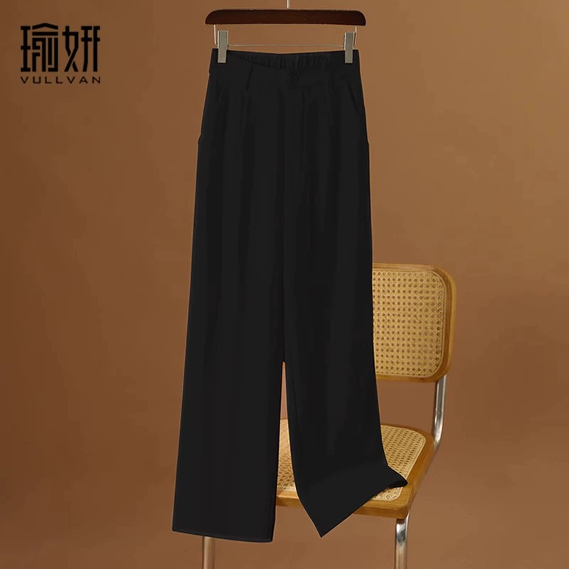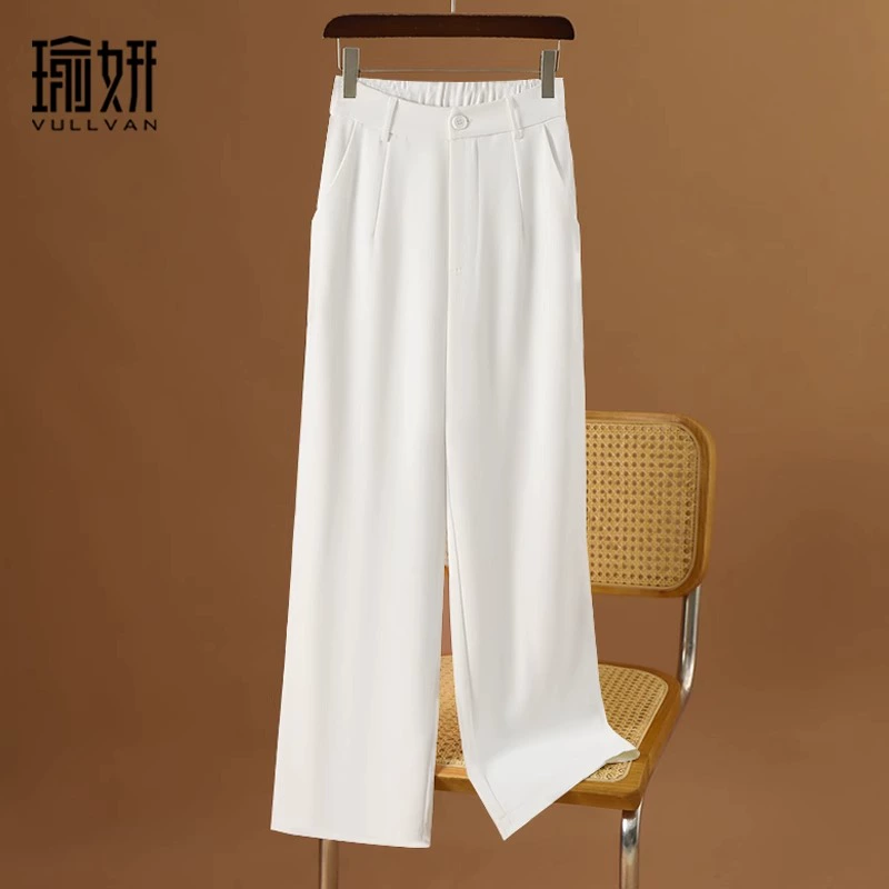 | nameOriginal | White ice silk thin mom high waist straight wide leg pants |