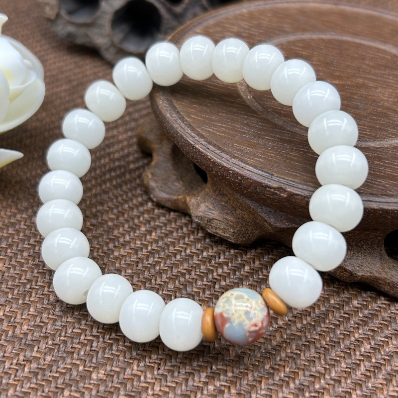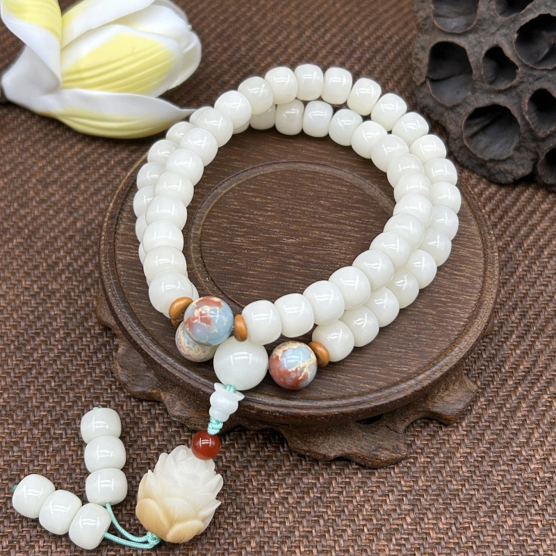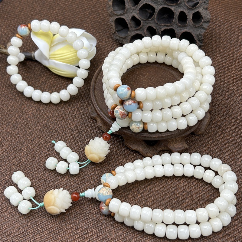 White Jade Bodhi Root 108 Beads Bracelet Shoushan Stone Accessories Lotus Bodhi Seed Beads Beads Literary Play Bracelet