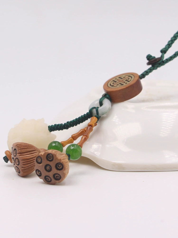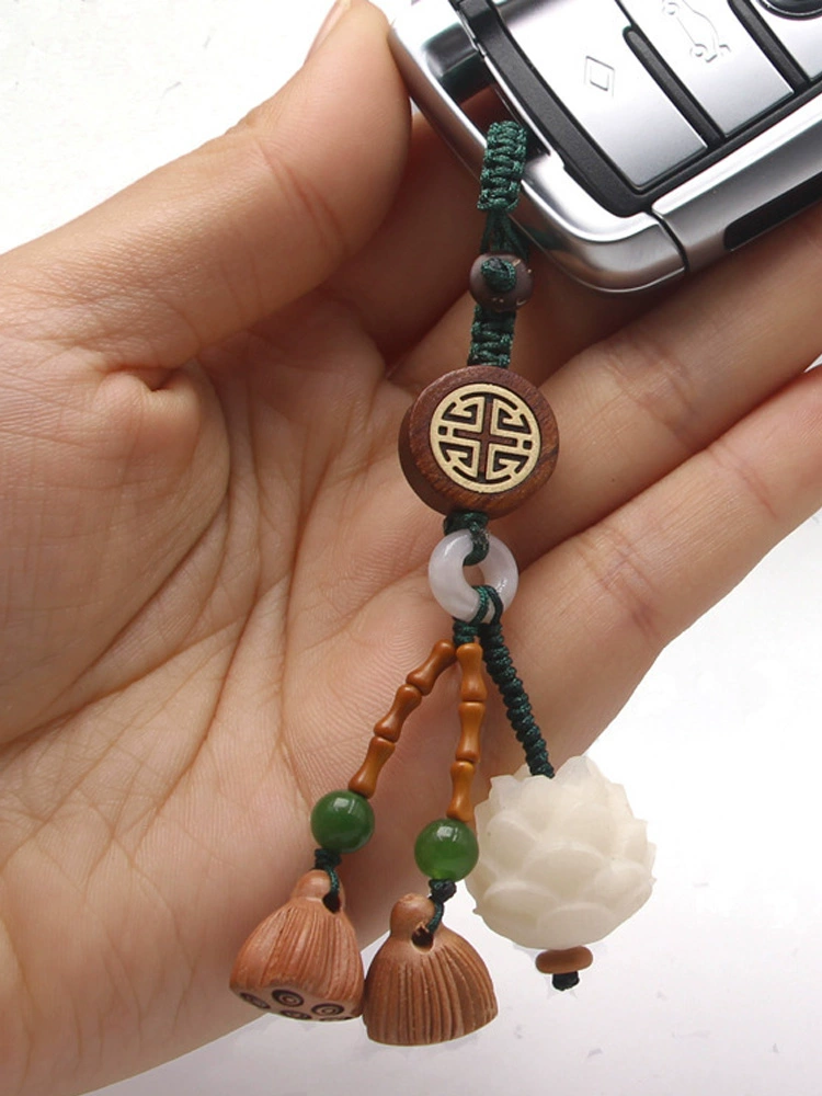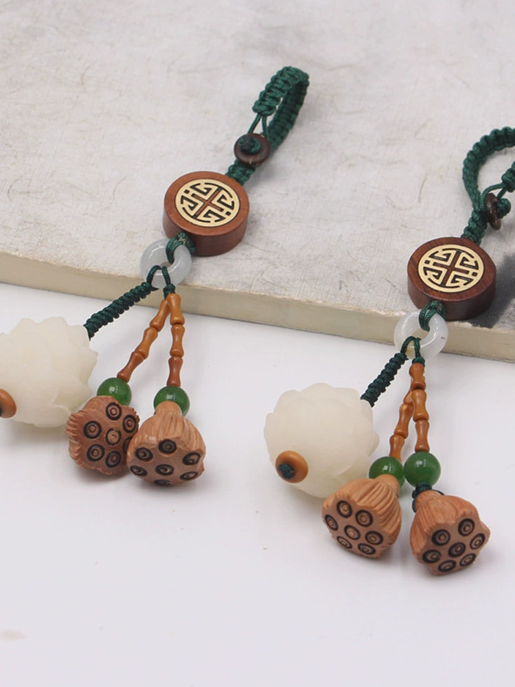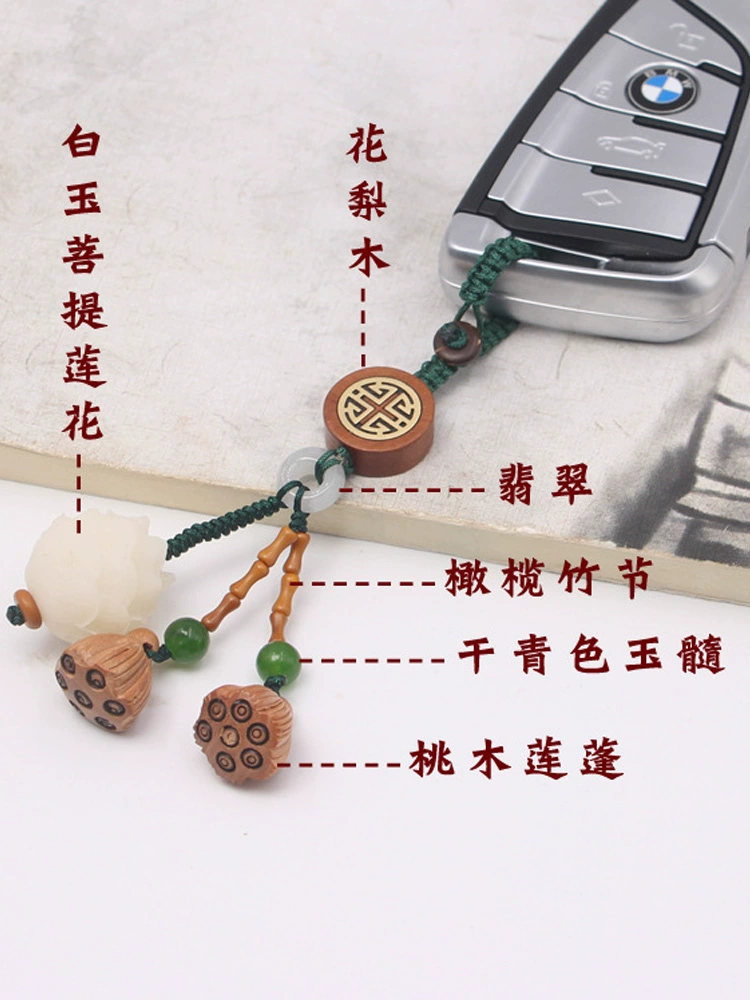 White jade bodhi root carved lotus mobile phone pendant peach wood lotus key chain pendant step by step lotus character for men and women