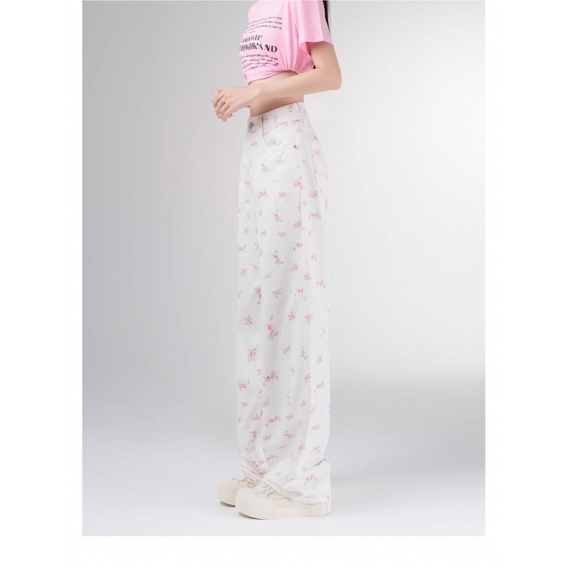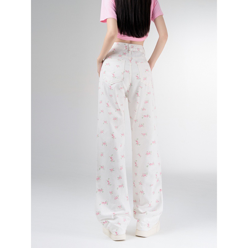 | nameOriginal | White Jeans Women's Floral Design High Waist Narrow Wide Leg Pants Straight Trousers Small 2024 New |