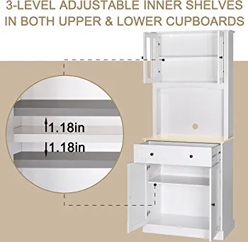 | descriptionOriginal | 3-LEVEL ADJUSTABLE SHELVES & GLASS DOORS – The kitchen pantry cabinet has 3 adjustable shelves with a width of 1.18 inches that can be adjusted to suit your habits and needs. This kitchen pantry storage cabinet features clear glass doors that clearly display the contents of the storage cabinet. It is not only for storage but also for decoration. |