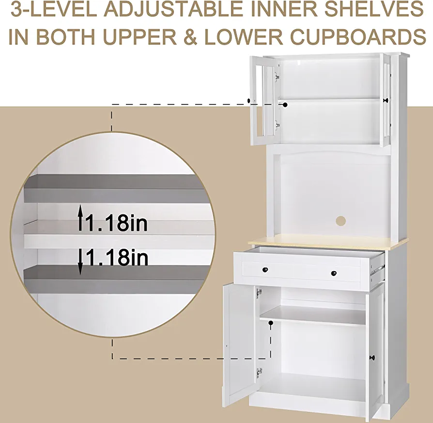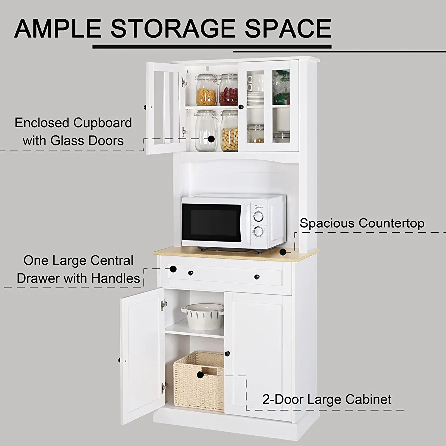 | nameOriginal | VEIKOU 72" Kitchen Buffet Hutch Storage Cabinet, Freestanding Pantry Buffet w/Adjustable Shelves & Glass Doors, Tall Kitchen Storage Cabinets with Upgraded Metal Hinges, White |