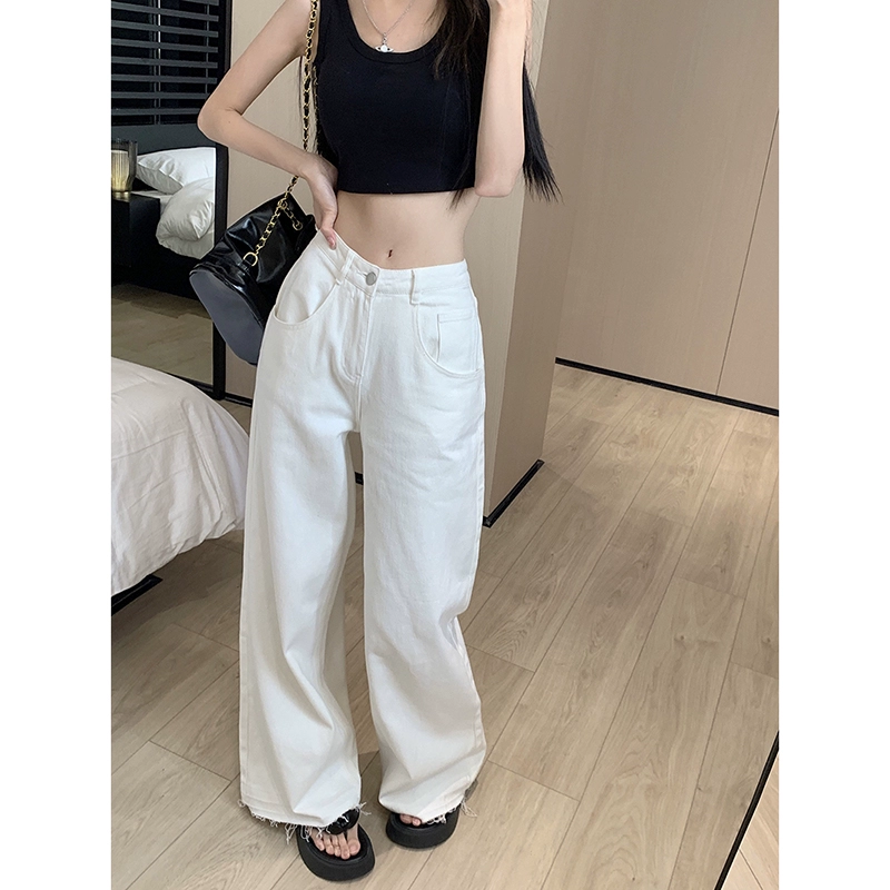| nameOriginal | White Korean style high-waisted jeans with ripped edges |