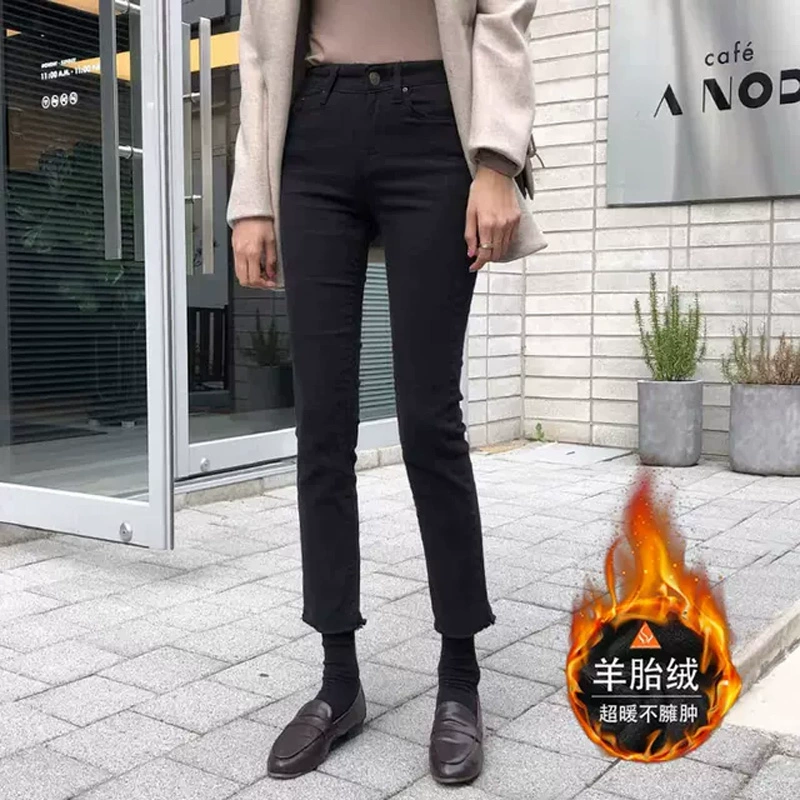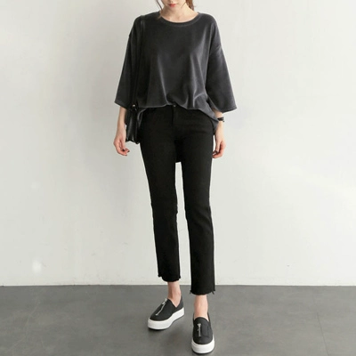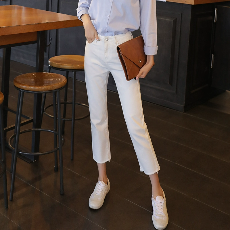 | nameOriginal | White Korean style loose-fitting thin raw edge nine-point jeans |