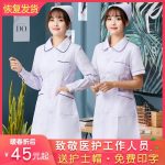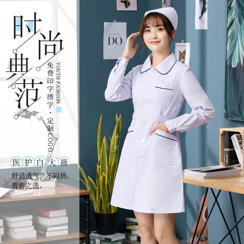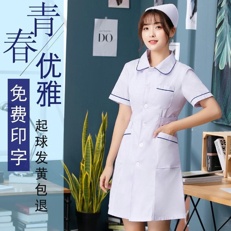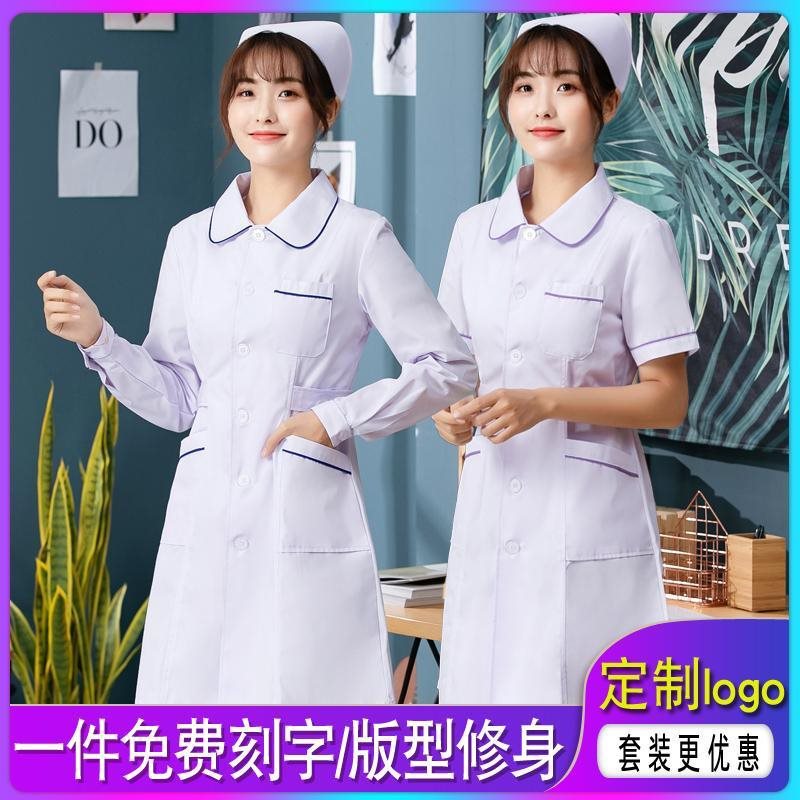 | nameOriginal | White lab coat long sleeve internship nurse short sleeve female summer round neck with blue edge health school student beauty pharmacy overalls |