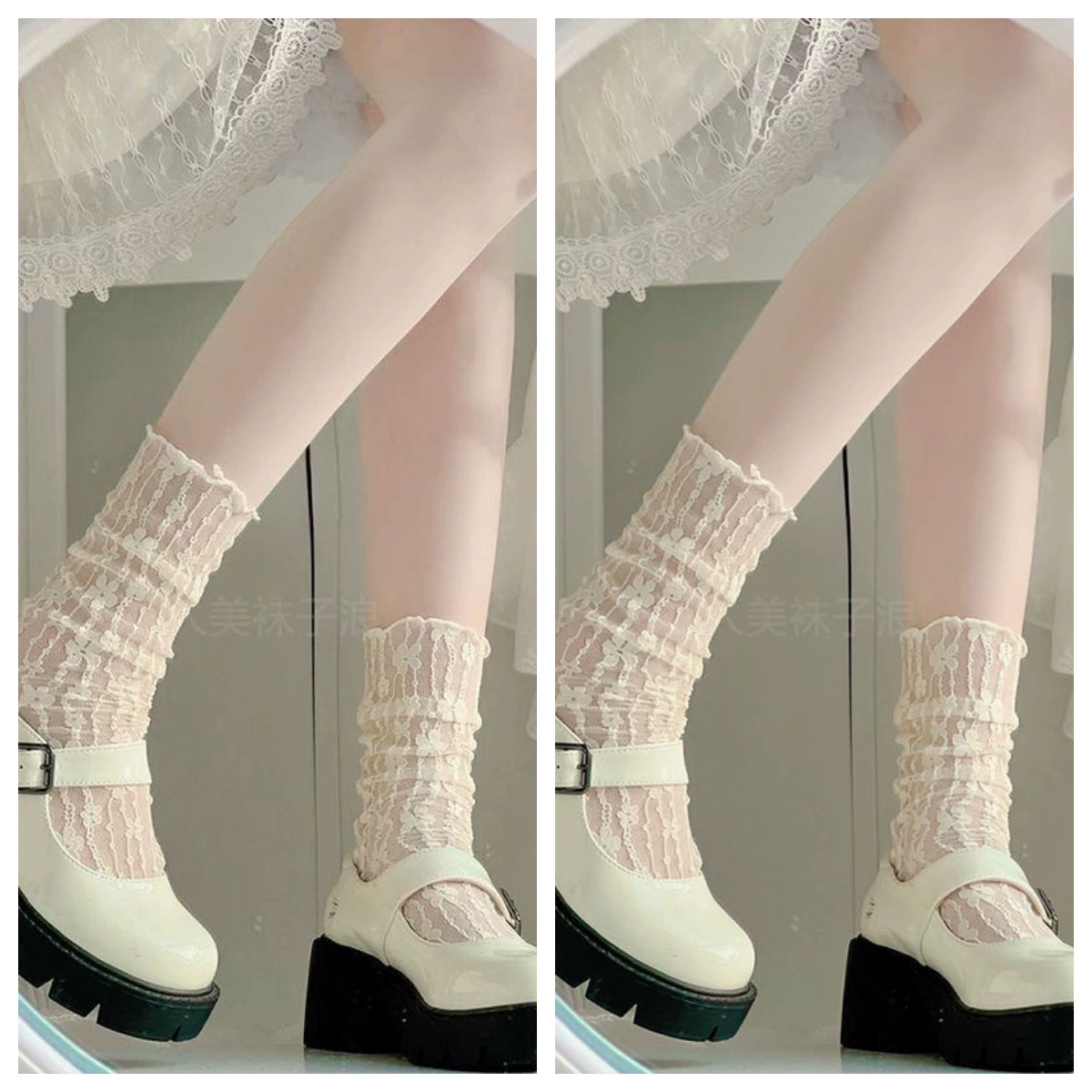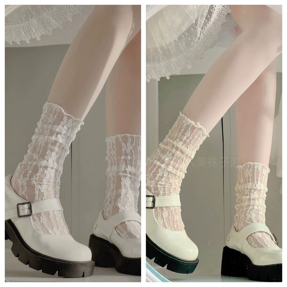 | nameOriginal | White lace pile socks women's mid-calf socks summer mesh thin Japanese style jk flower Mary Jane fairy socks |