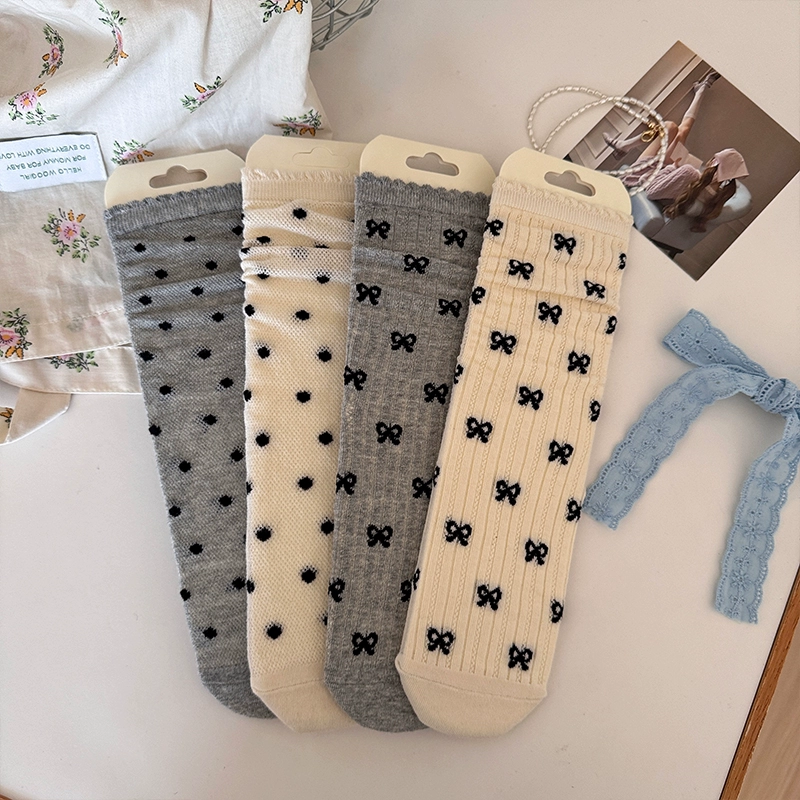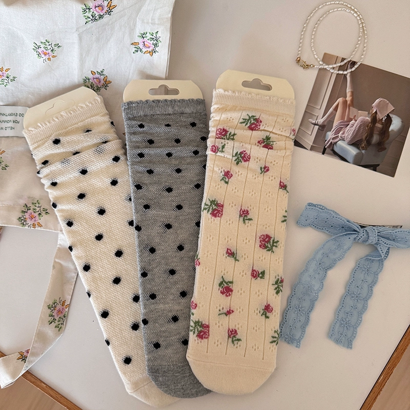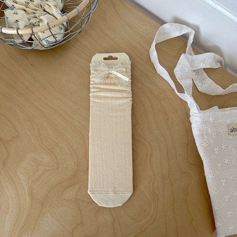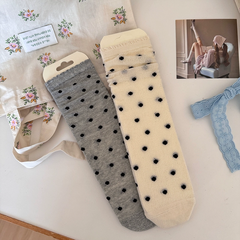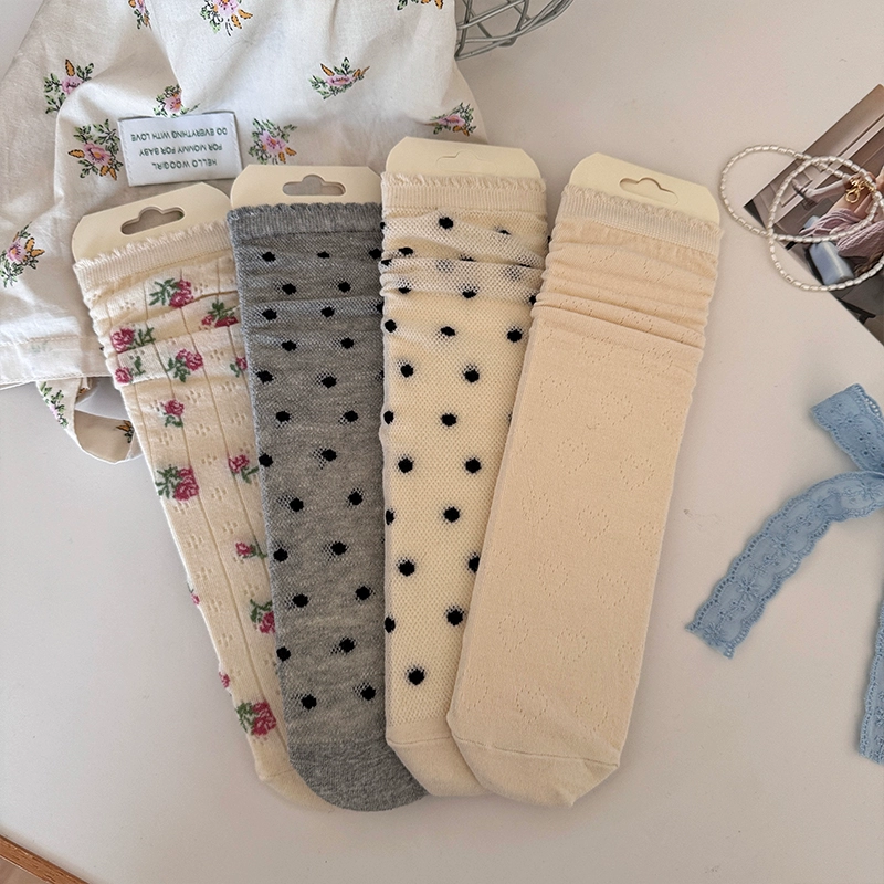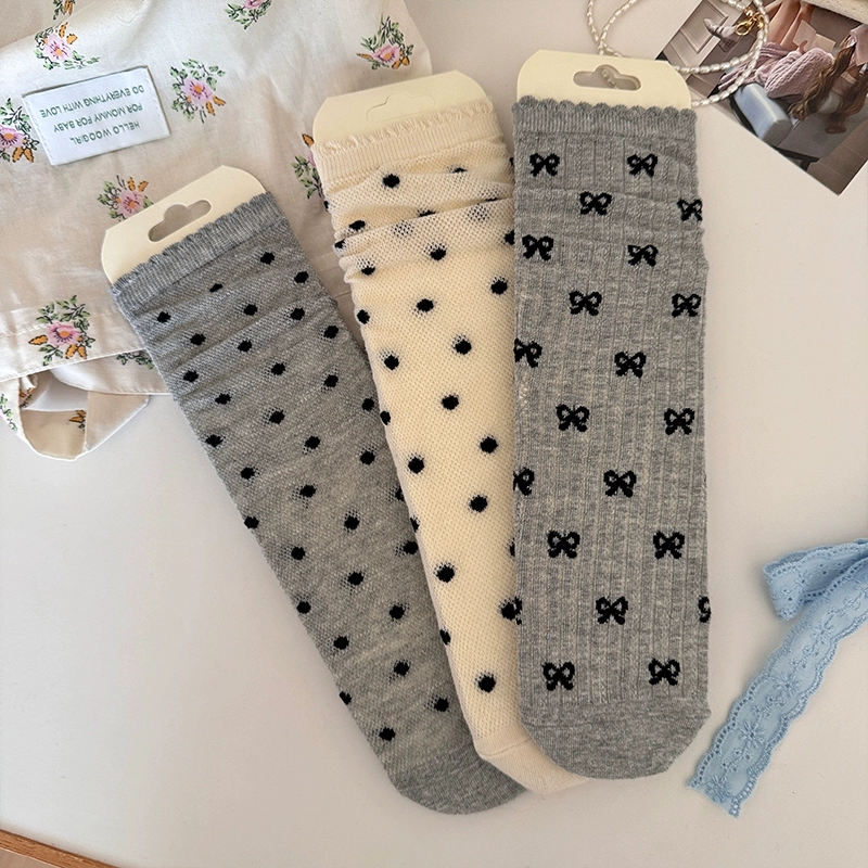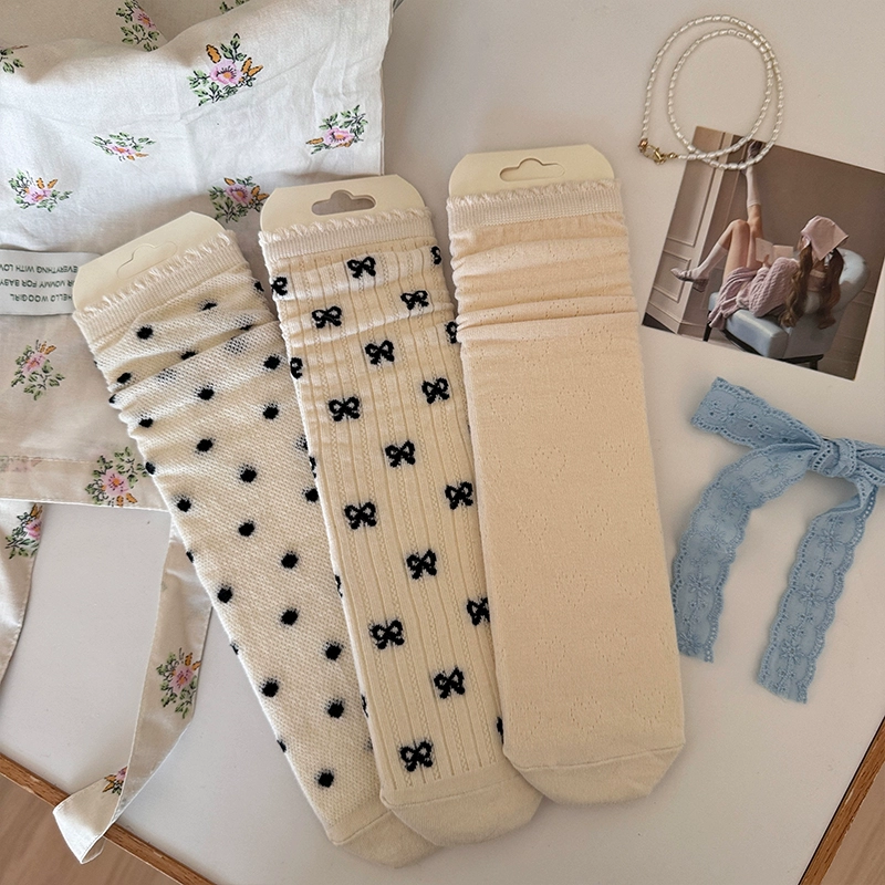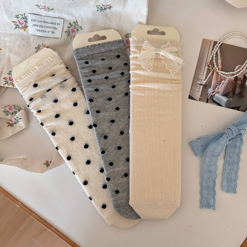 | nameOriginal | White lace socks summer thin women's pure cotton mesh hollow tube socks bow knot polka dot summer pile socks |